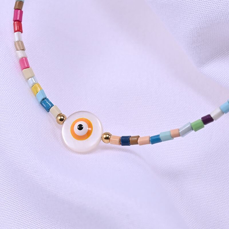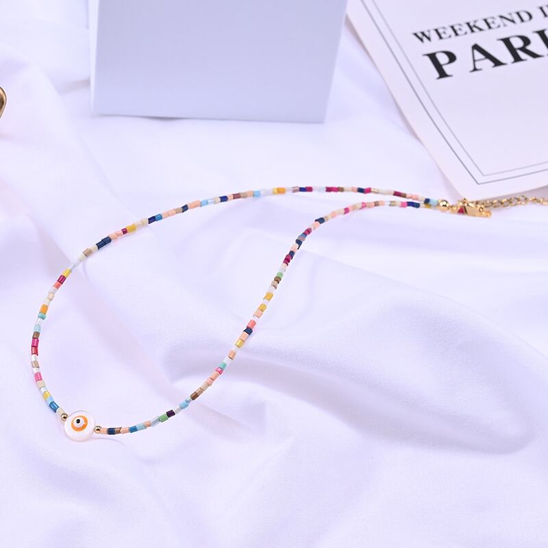 送料無料 シードビーズカラフルなネックレスナチュラルシェル邪眼チャームステンレス鋼ネックラック女性ボヘミアンヴィンテージジュエリー レース 天然 ビンテージ アクセサリー AE665513751718982