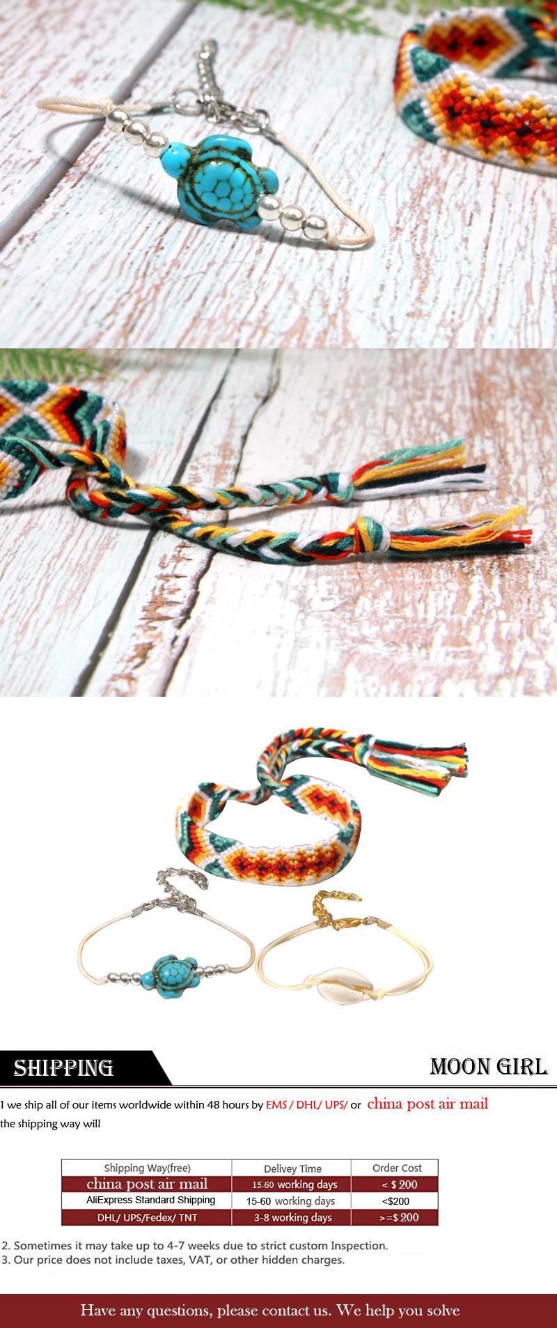 送料無料 MOONGIRL3ピースシェルタートルブレスレットセット織自由奔放に生きる手作りブレスレット女性の友情Pulsera配送 アクセサリー AE665572939927372