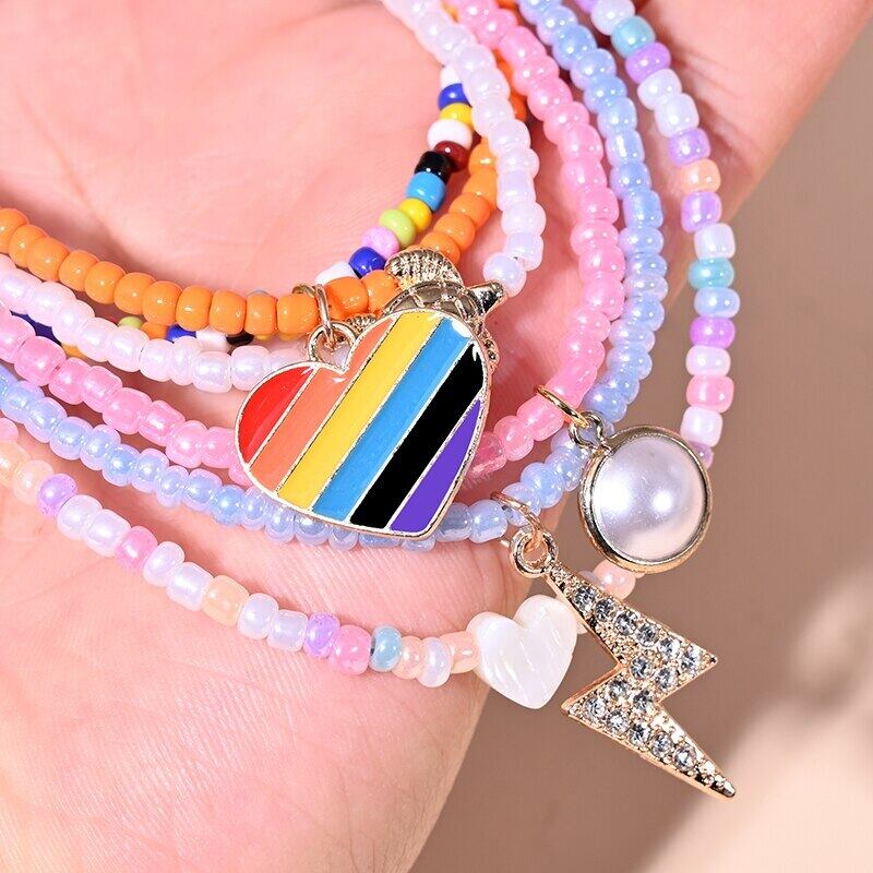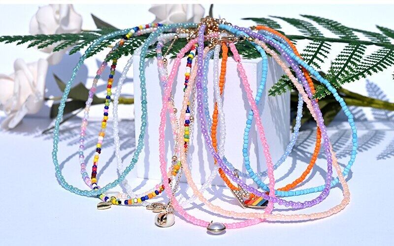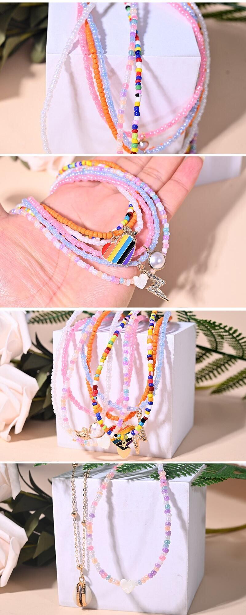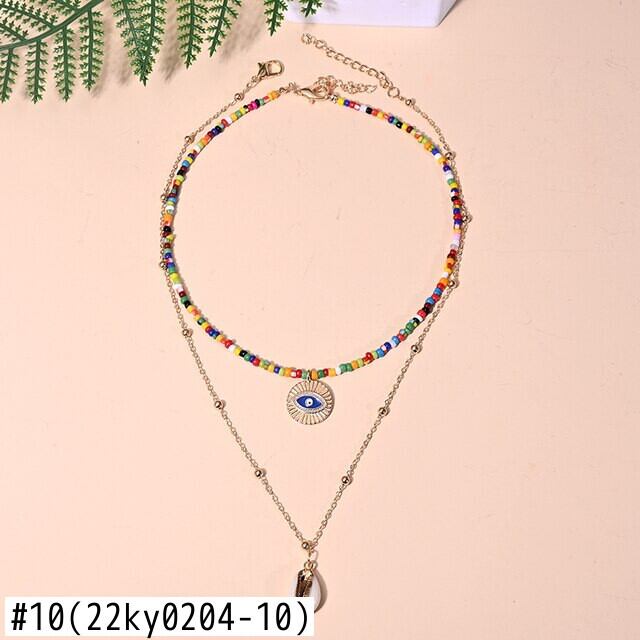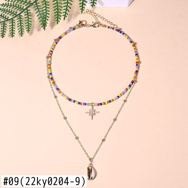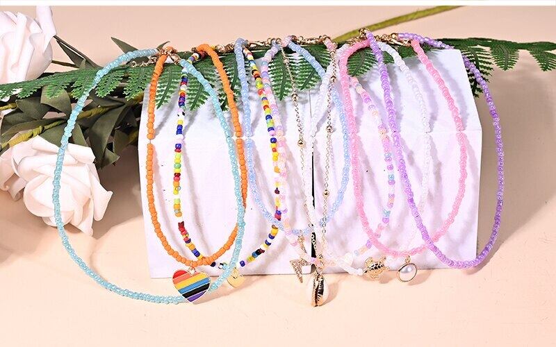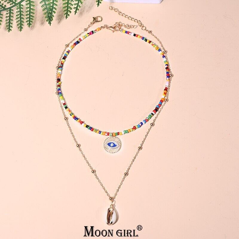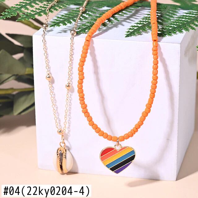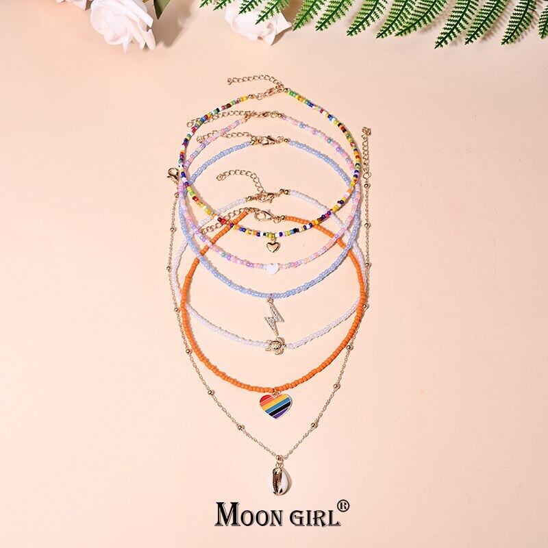 送料無料 2ピースマルチカラースモールビーズハートマルチレイヤーチョーカーシェルペンダントネックレス女性ムーンガールジュエリー レース アクセサリー AE665578515056696