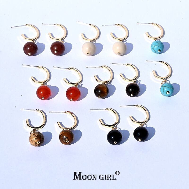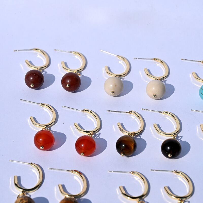 送料無料 10mmナチュラルストーンカラー瑪瑙ビーズダングルピアス女性幾何学的ダングルギフトピアス2021トレンドジュエリー イヤリング リング 指輪 天然 アクセサリー AE665584874594