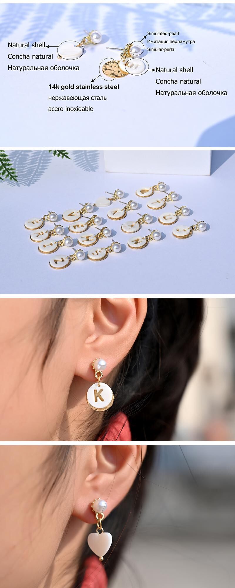 送料無料 シェルホロウイニシャルダングルピアス女性コロケーションハート非対称パールピアス2022トレンドパーソナリティジュエリー イヤリング 真珠 リング 指輪 アクセサリー AE66555514003795