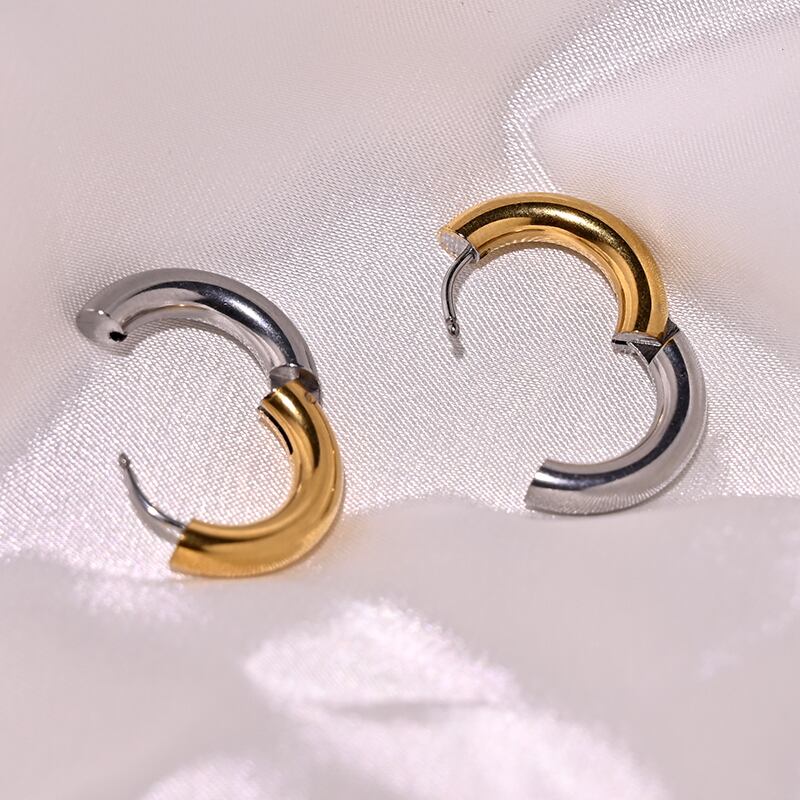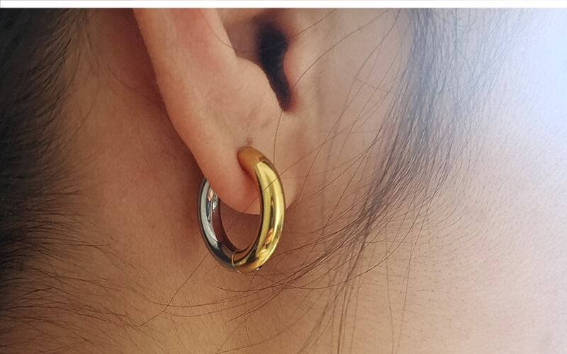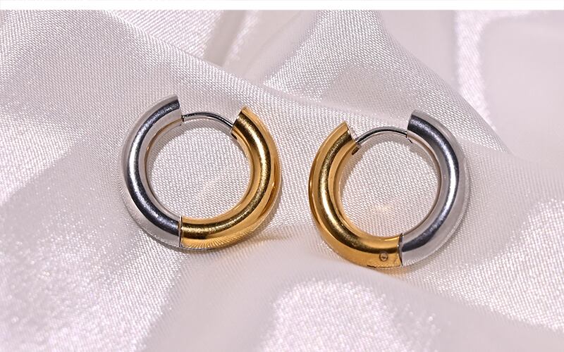 送料無料 ゴールドシルバーカラーフープイヤリングステンレススチールシンプルな女性の耳のバックル色あせないヒップホップジュエリーアクセサリーMOONGIRL 指輪 銀 アクセサリー AE66558857540893