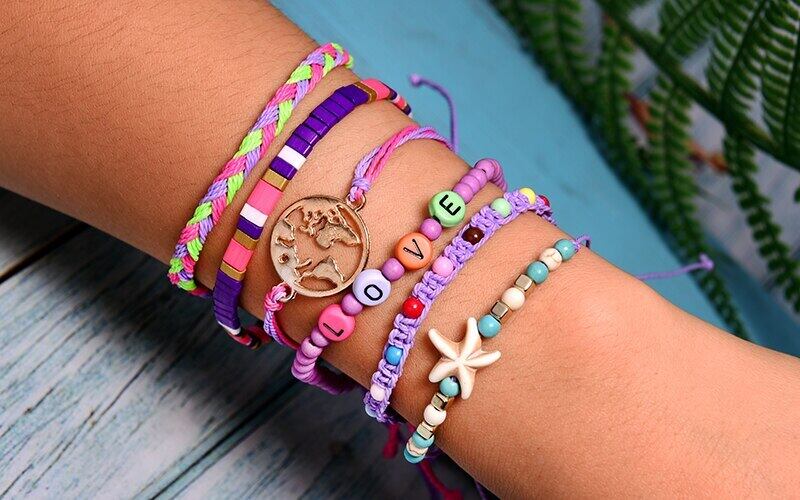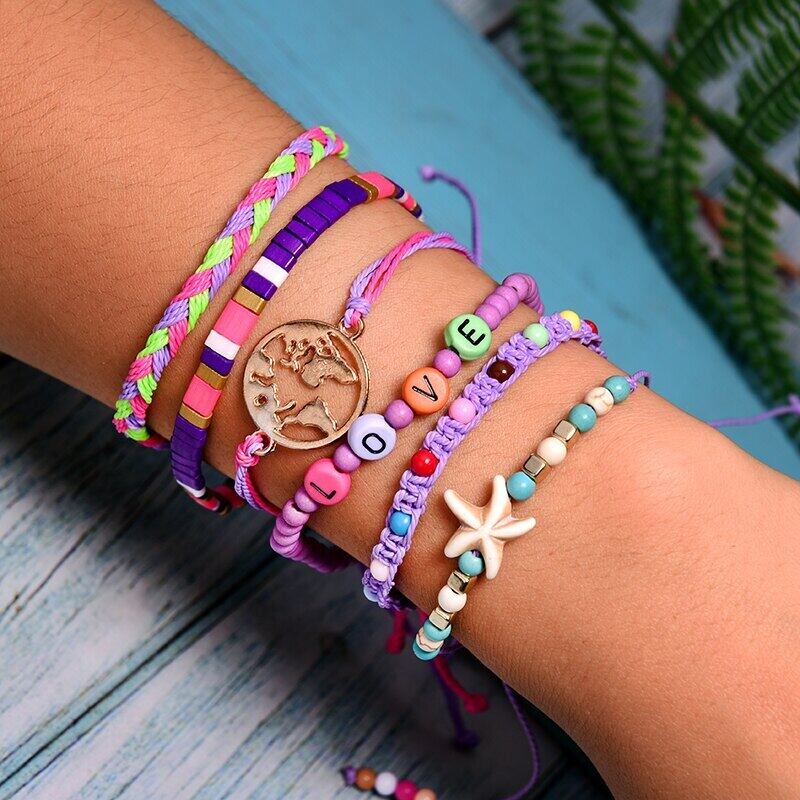 送料無料 MOONGIRL6ピースミユキティラビーズブレスレット女性レターマップ編組自由奔放に生きるPulserasジュエリー発送 アクセサリー AE665571509190591