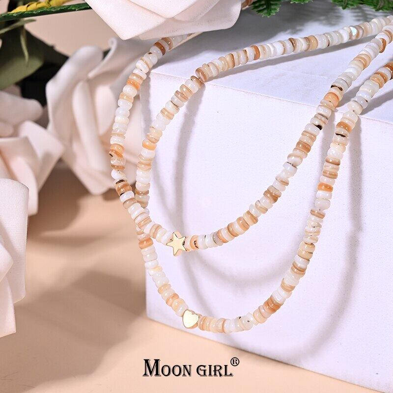 送料無料 MOONGIRLゴールデンスターチョーカーネックレスレディースジュエリーはステンレススチールチェーンと4mmシェルビーズを使用 レース アクセサリー AE665526526698921