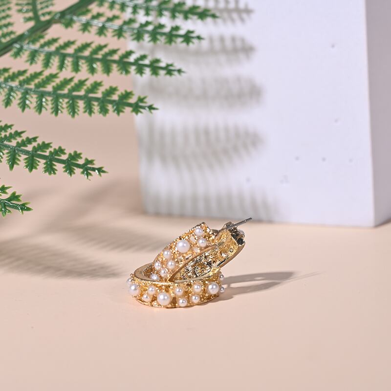 送料無料 パールメタルリングスタッドピアス女性パーティーサマーギフトステンレススチール2022トレンドイヤークリップ イヤリング 夏物 指輪 真珠 アクセサリー AE665596572889433