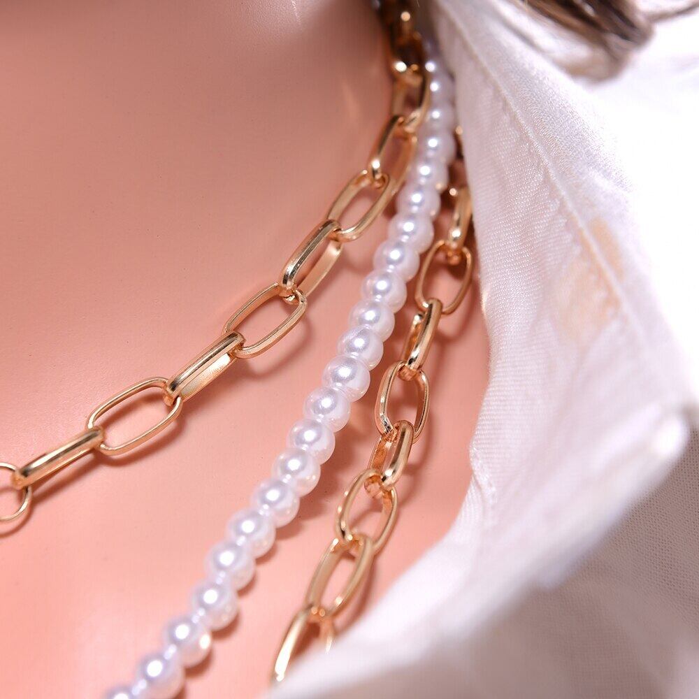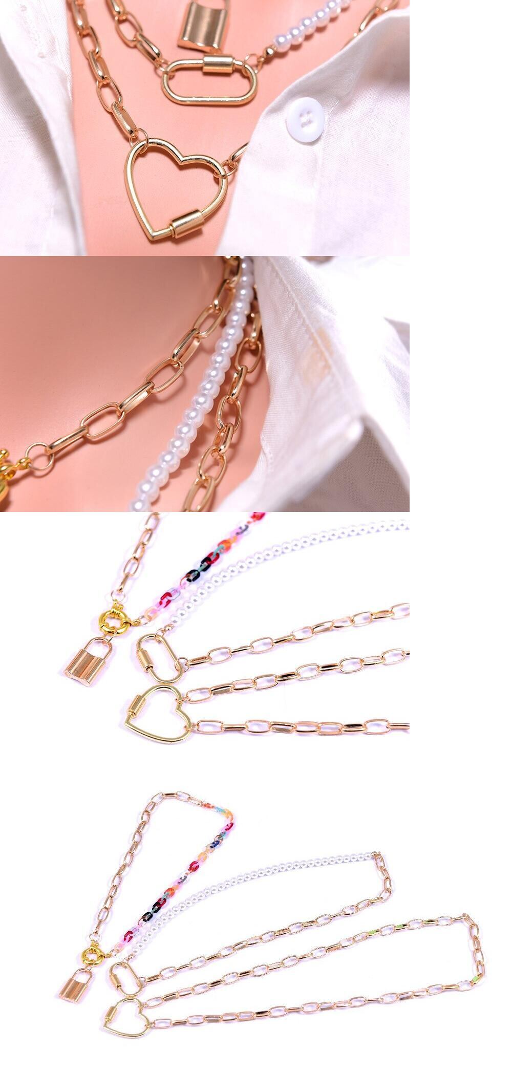 送料無料 チョーカーチアンゴールドメッキゴスチェーンアクリルシミュレートパールステートメントトレンディなロックハート美的ネックレス女性 レース 真珠 人工 アクセサリー AE665518928984649