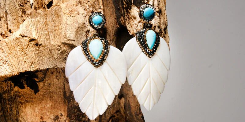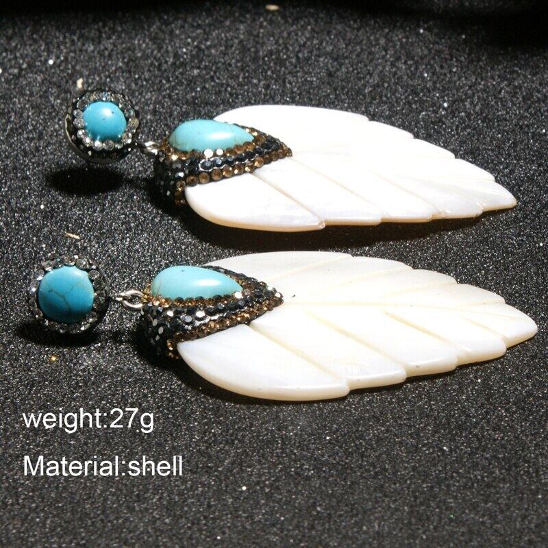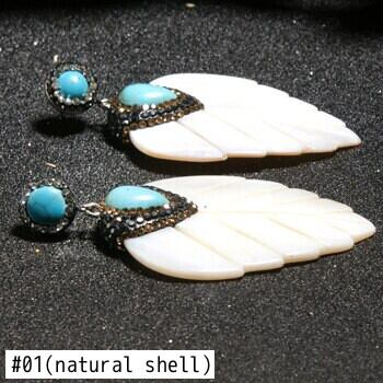 送料無料 ムーンガールリーフシェイプナチュラルシェルダングルピアスステートメントパーティーウェディングイヤリング女性ギフトジュエリー 指輪 天然 アクセサリー AE665587053680433