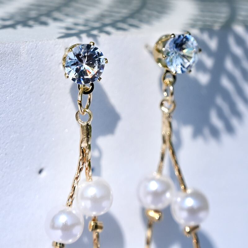 送料無料 幾何学的な真珠のぶら下がりイヤリング女性2021年トレンドジルコンサウスジュエリーパーティーギフトシンプルなクリスタルイヤリング パール 指輪 アクセサリー AE665543591726845