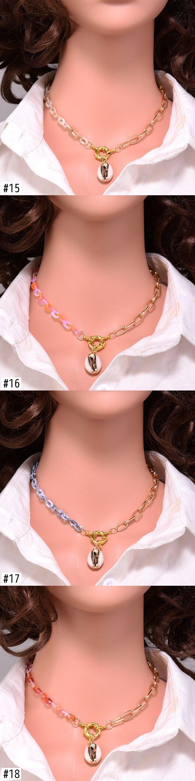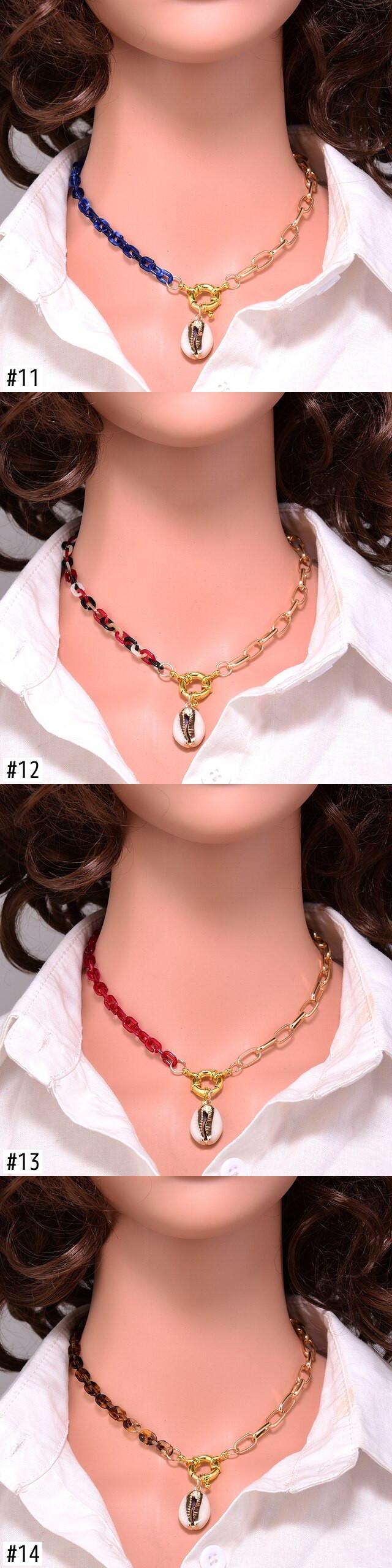 送料無料 アクリルネックチェーンゴールドメッキナチュラルシェルエステティックチョーカーシミュレートパールクロスタートルネックレス女性コラール レース 真珠 天然 人工 アクセサリー AE665564172236435