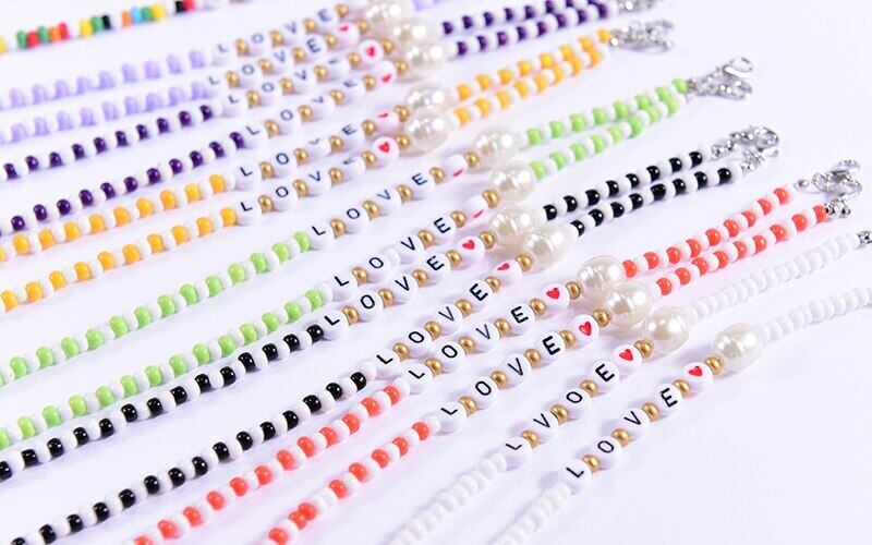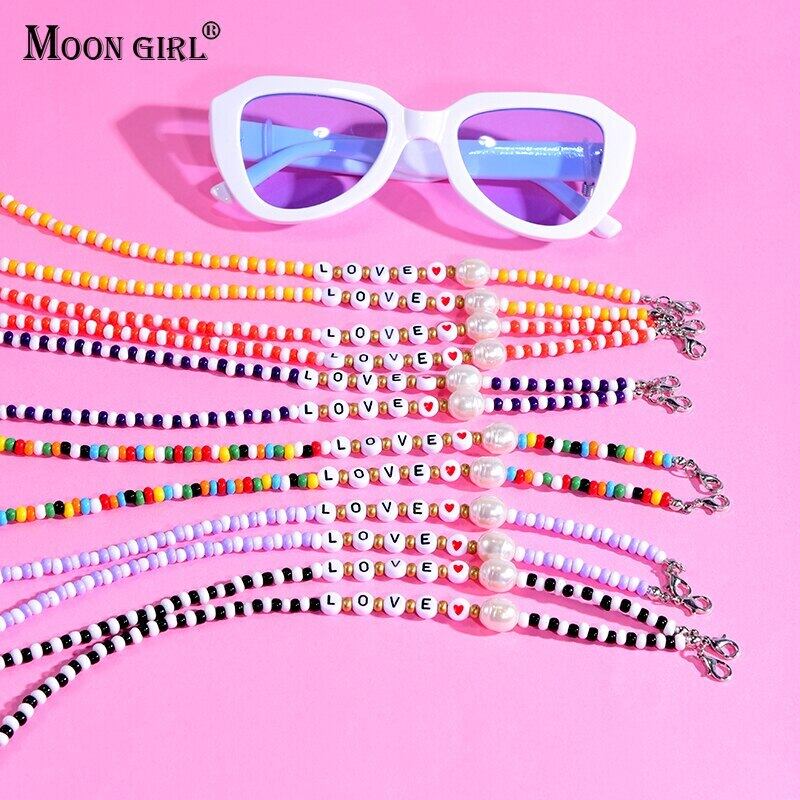 送料無料 パールレターシードビーズGlesチェーン女性トレンディな恋人アイウェア読書サングルハンギングネックチェーンストラップホルダー 真珠 アクセサリー AE665526834375853