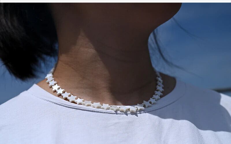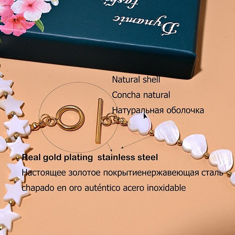 送料無料 絶妙なハートスターチョーカーネックレス女性マザーオブパールビーズステンレススチールチェーンクラスプビジューMOONGIRL レース 真珠 アクセサリー AE665586988490161