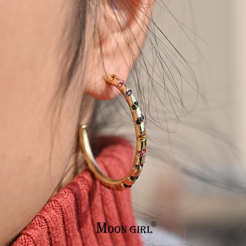送料無料 ラウンドメタルイヤリングレトロラグジュアリーラインストーンギフト幾何学的フープイヤリング2022トレンド 指輪 アクセサリー AE665584969970897