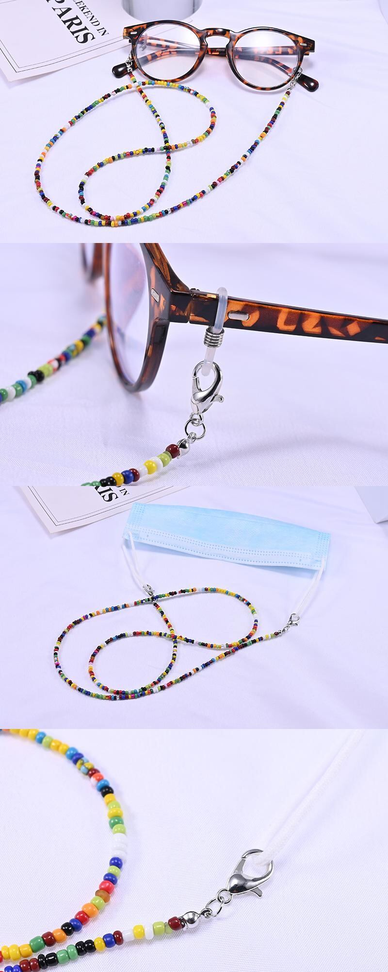 送料無料 グレスチェーンマスク女性ネックストラップカラフルシードビーズマスクホルダーアイグルサングルスペクタクルストラップ アクセサリー AE665532601299689