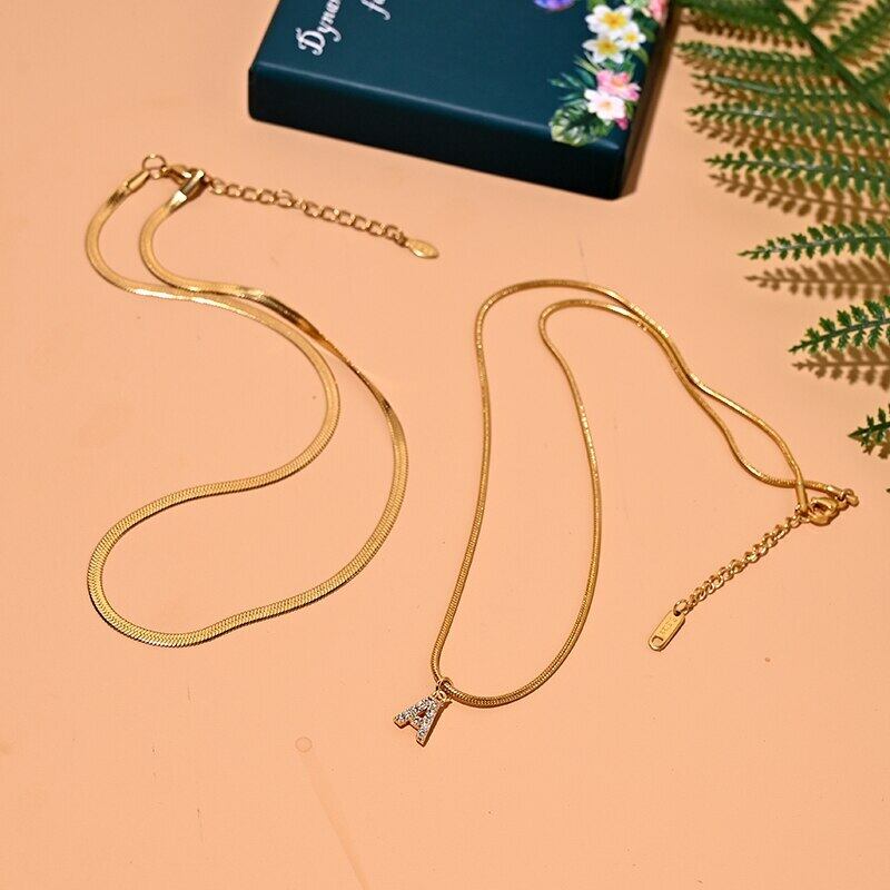 送料無料 2ピースゴールドメッキステンレススチールA-Z女性イニシャルネックレストーンソリッドチェーンレイヤードカラーペンダントブリンブリンレターガールチョーカー レッド レース ソリッドカラー アクセサリー AE66551574098864