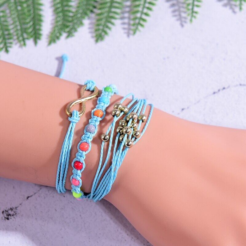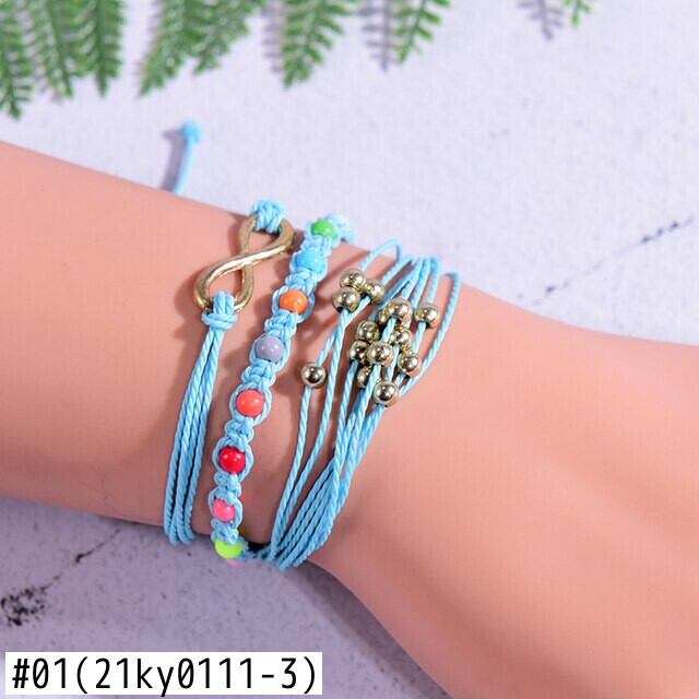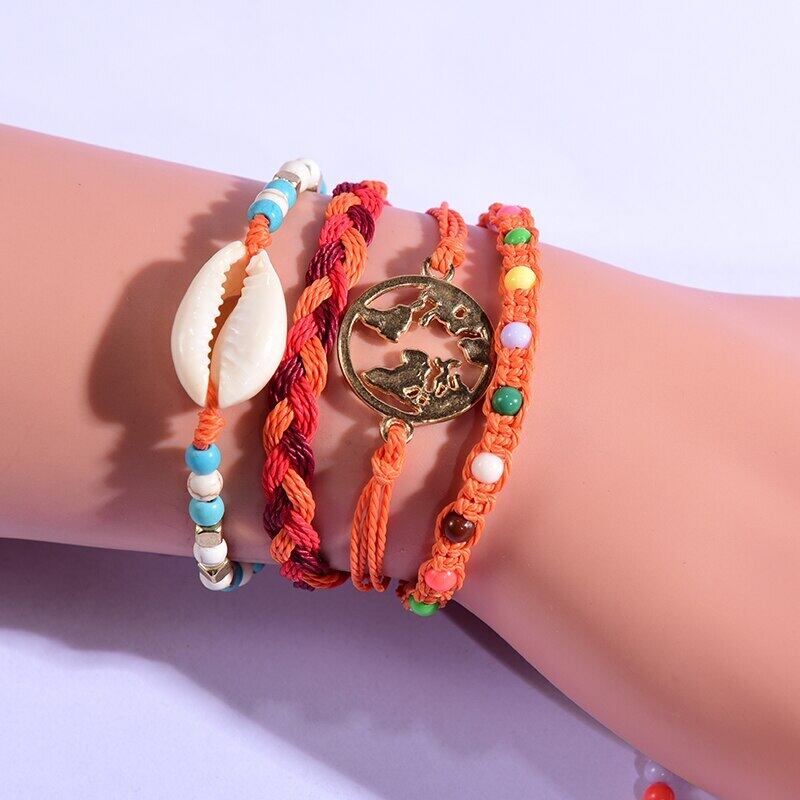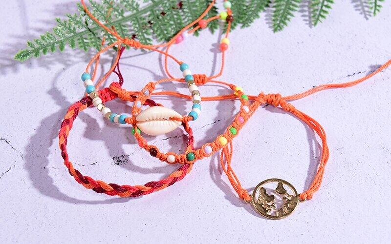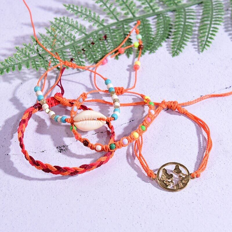 送料無料 4個/セット織り友情チャームブレスレット女性ナチュラルシェル手作り編みこみマクラメ自由奔放に生きるブレスレット 天然 アクセサリー AE665549285470558