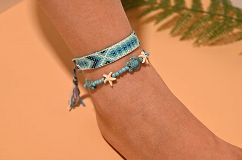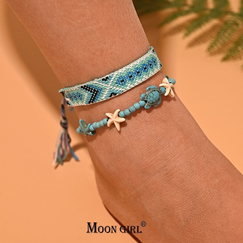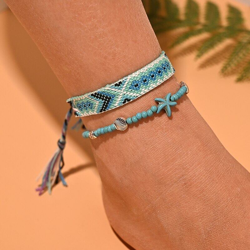 送料無料 2個/ロットビーズアンクレットセット女性手作りマクラメボヘミアンアンクレットブレスレットレッグフットチェーンストラップフレンドシップビーチジュエリー アクセサリー AE665524903967789