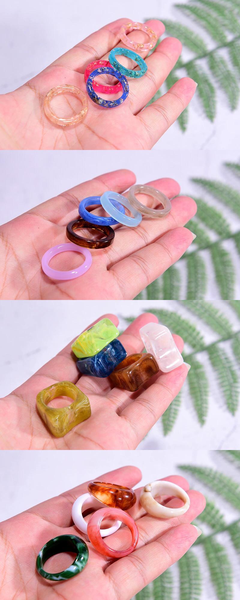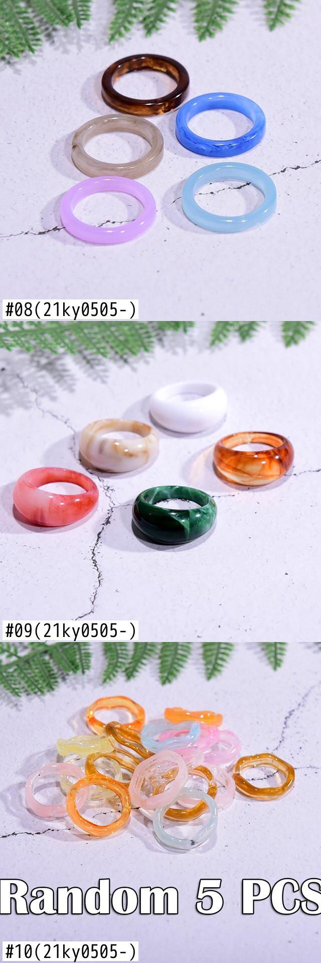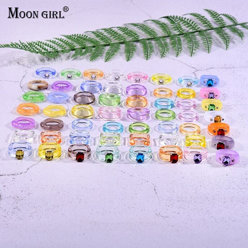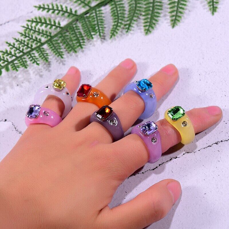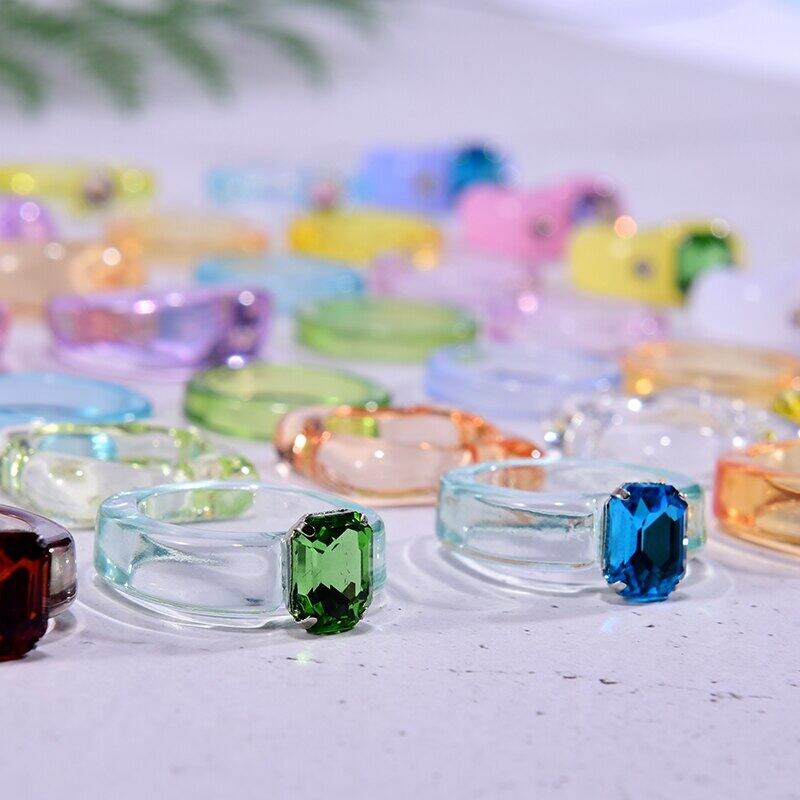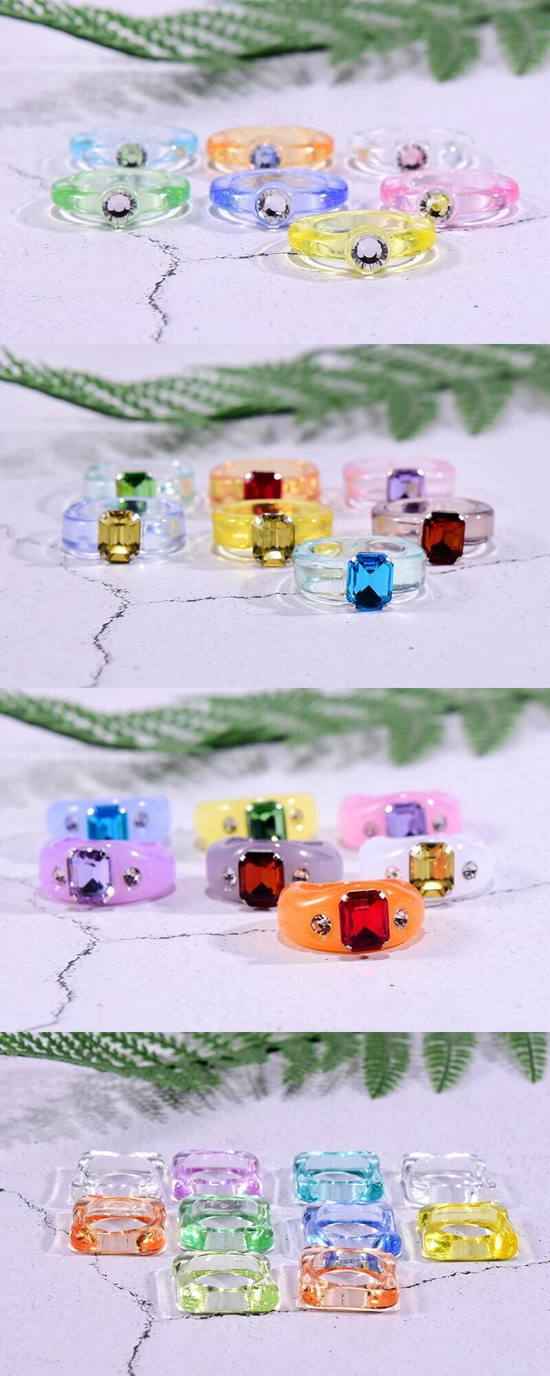 送料無料 5個/ロット2021透明樹脂アクリルラインストーンカラフルな幾何学的な正方形のラウンドリングセット女性ジュエリーパーティーギフト 指輪 スクウェア アクセサリー AE665510900910951
