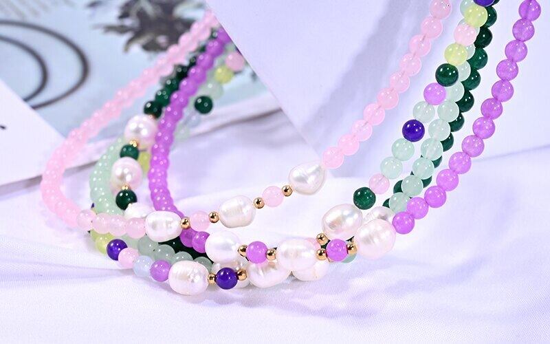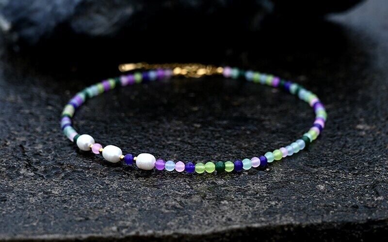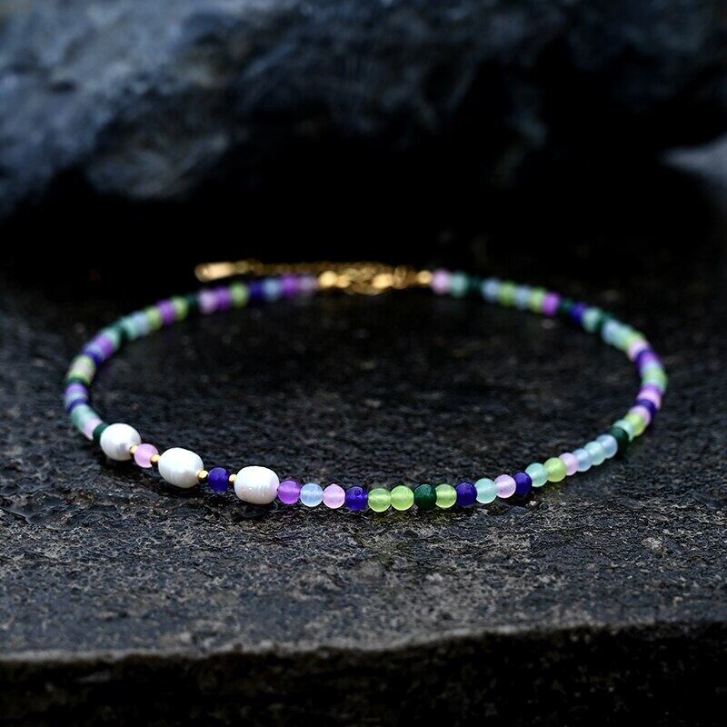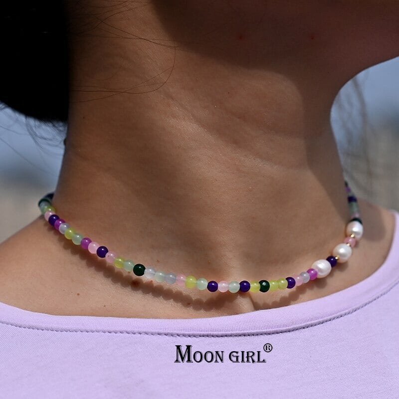 送料無料 4MMカルセドニーネックレス女性淡水パールチョーカージュエリー自由奔放に生きるステンレス鋼ストリートウェアコリアー レース 真珠 アクセサリー AE665572568915834