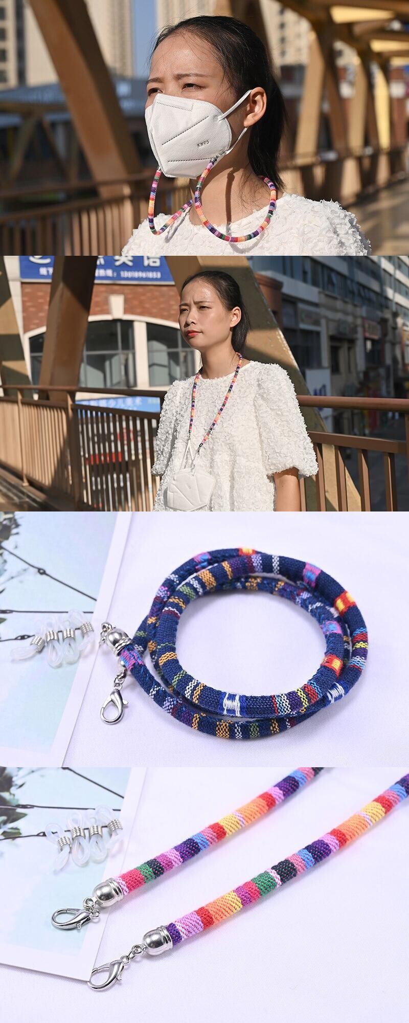 送料無料 ロープチェーンマスク女性ネックグレストラップフェイスマスクホルダーカラフルなアイグルサングルスペクタクルストラップ アクセサリー AE665542784193447