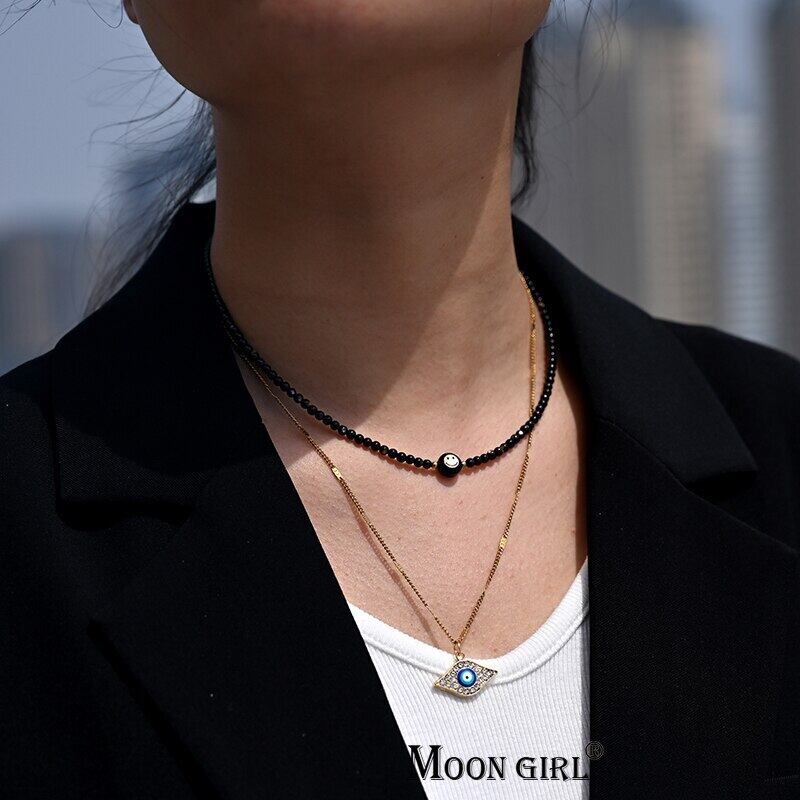 送料無料 ゴールドメッキステンレススチールイービルアイペンダントネックレスマザーオブパールビーズチョーカーネックレス女性サマージュエリー レース 夏物 真珠 アクセサリー AE665511957641798