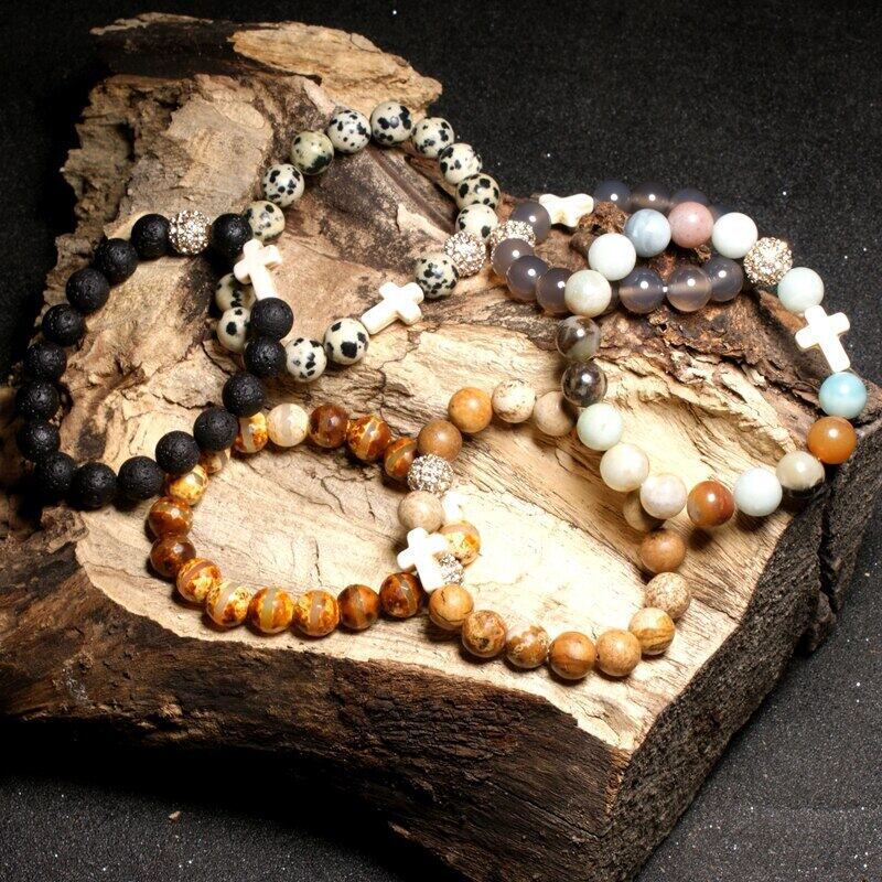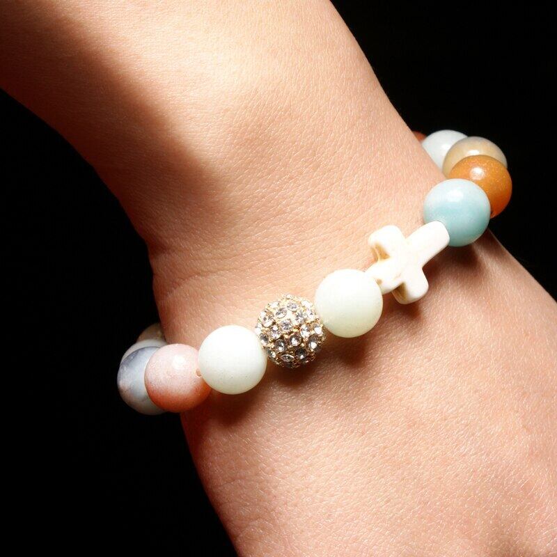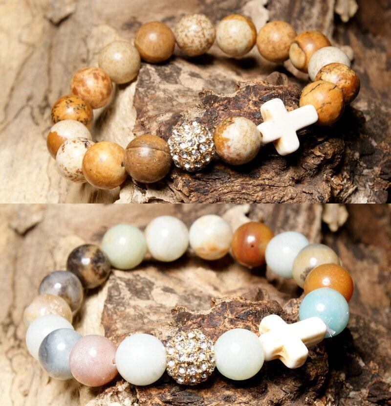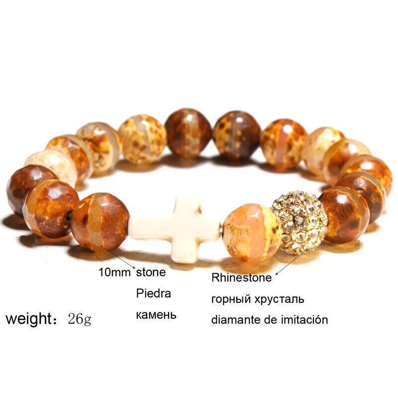 送料無料 MOONGIRL伸縮性のある10MM天然石舗装ボールクロス弾性ブレスレットビーズ自由奔放に生きるヨガブレスレットジュエリー発送 エラスティック ナチュラル アクセサリー AE665573484977517