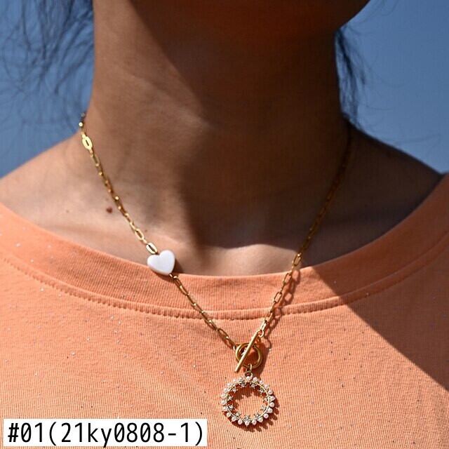 送料無料 ステンレス鋼チェーンネックレス女性金メッキキューバリンクチェーンハートシェルペンダントジュエリー自由奔放に生きるコリアー レース アクセサリー AE665554791164428
