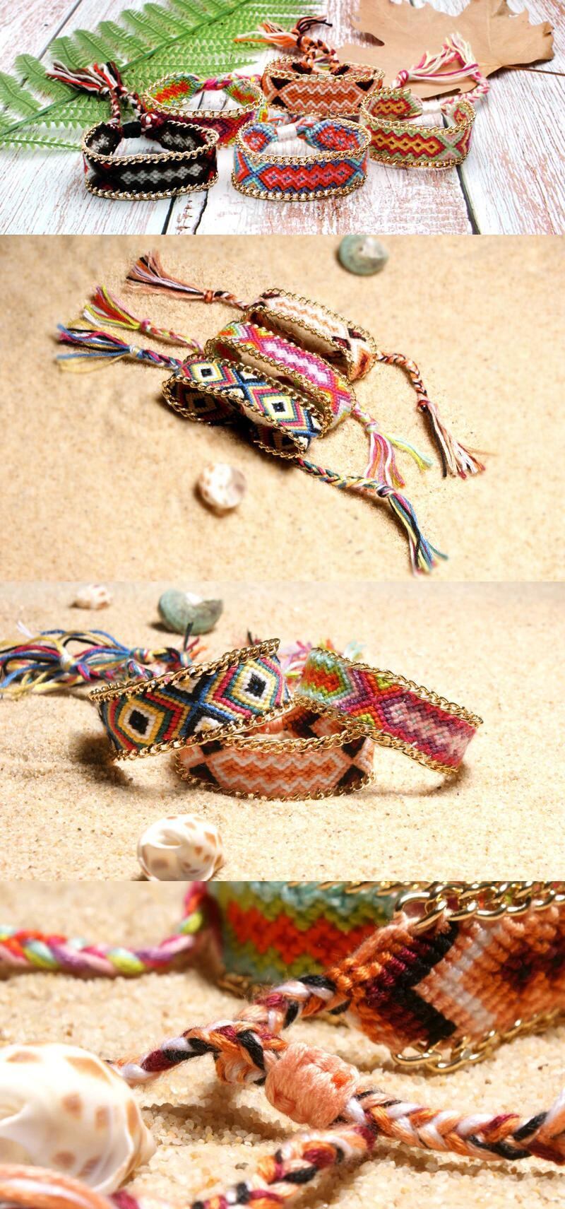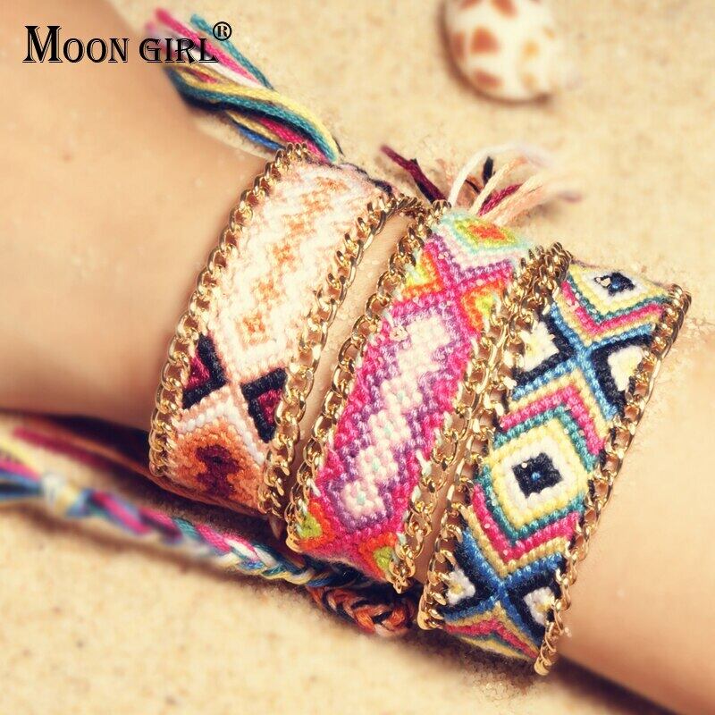 送料無料 MOONGIRLボヘミアンカラフルコットンロープチェーンチャームブレスレットフレンドシップガールズハンドウィーブ自由奔放に生きるヨガブレスレット船 アクセサリー AE665542085290305