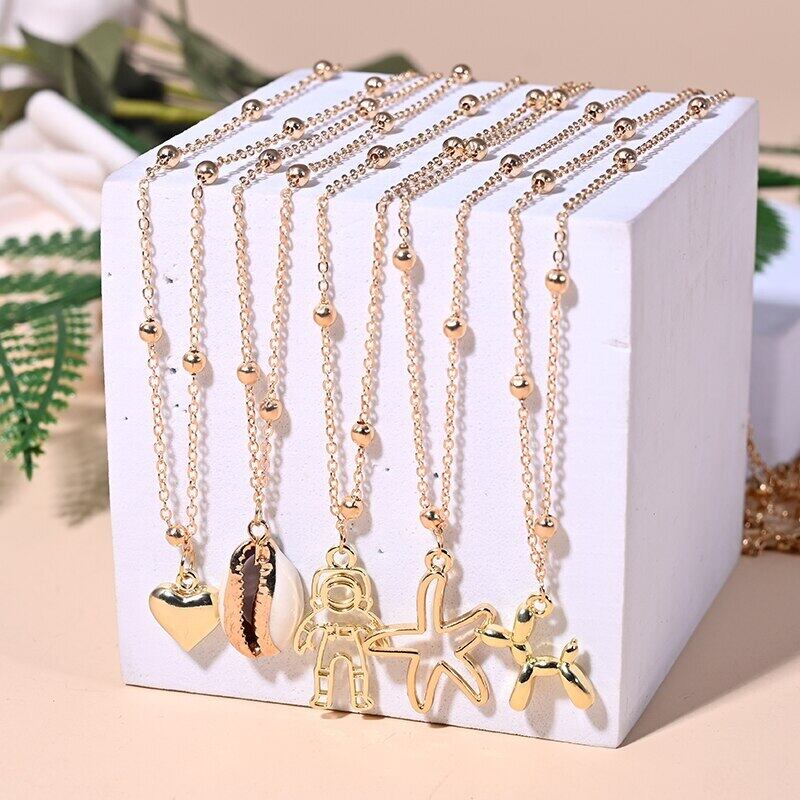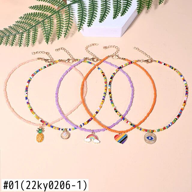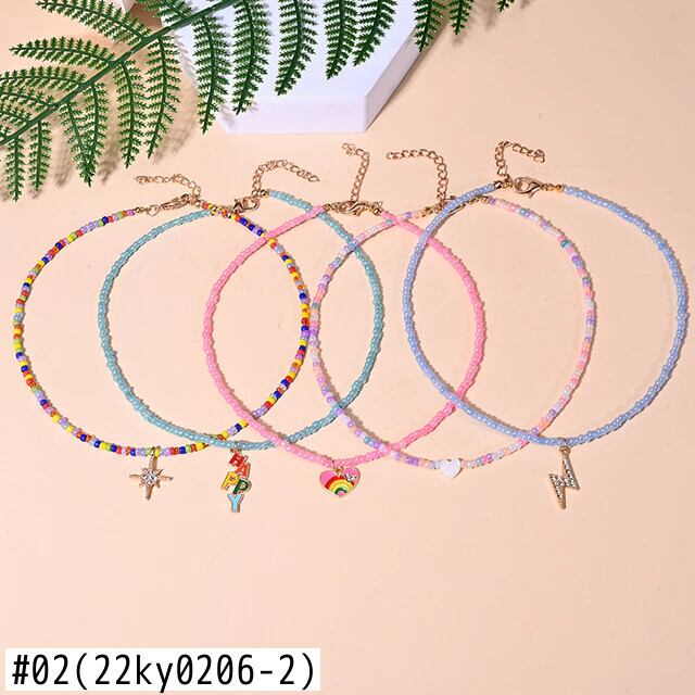 送料無料 5ピースパックマルチカラースモールビーズハートチョーカーシェルペンダントネックレス女性ムーンガールサマージュエリー レース 夏物 アクセサリー AE665568899631559