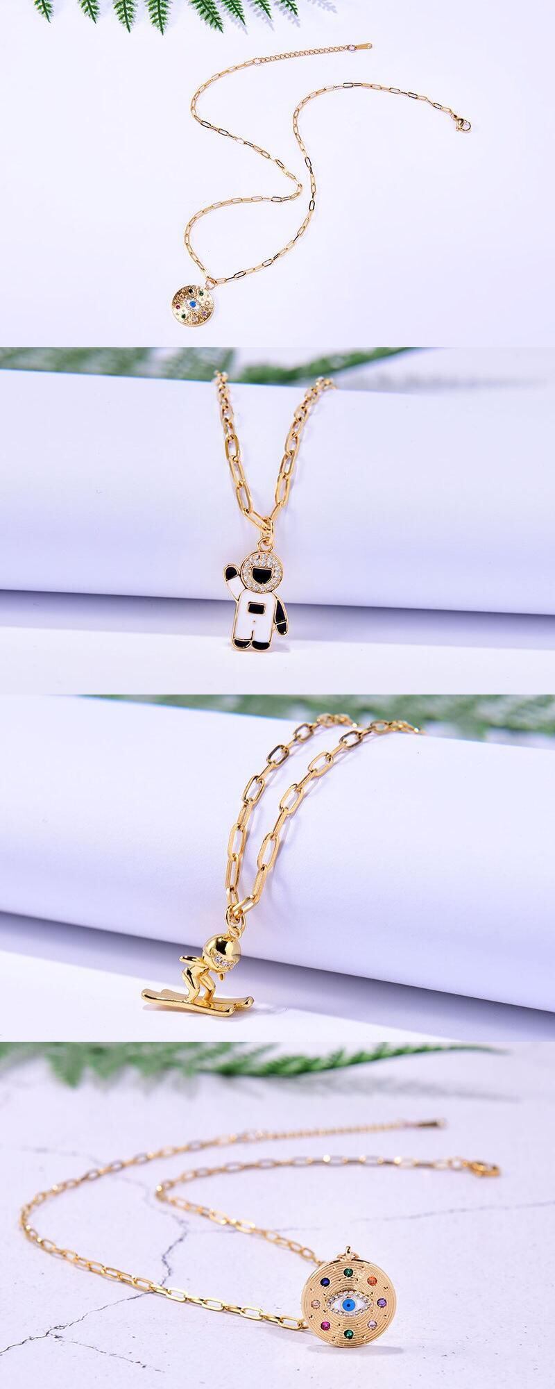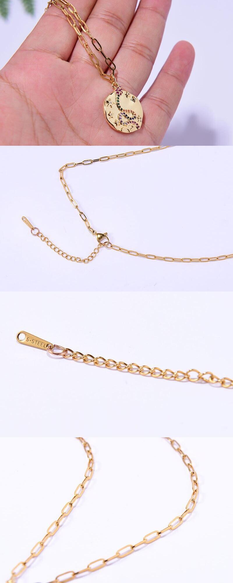送料無料 ステンレス鋼チェーンライトニングイービルアイペンダントネックレス女性トレンディなスネークムーンジルコンゴールドカラーパーティージュエリー レース アクセサリー AE665516569938811