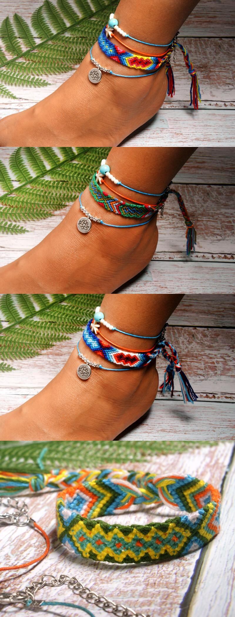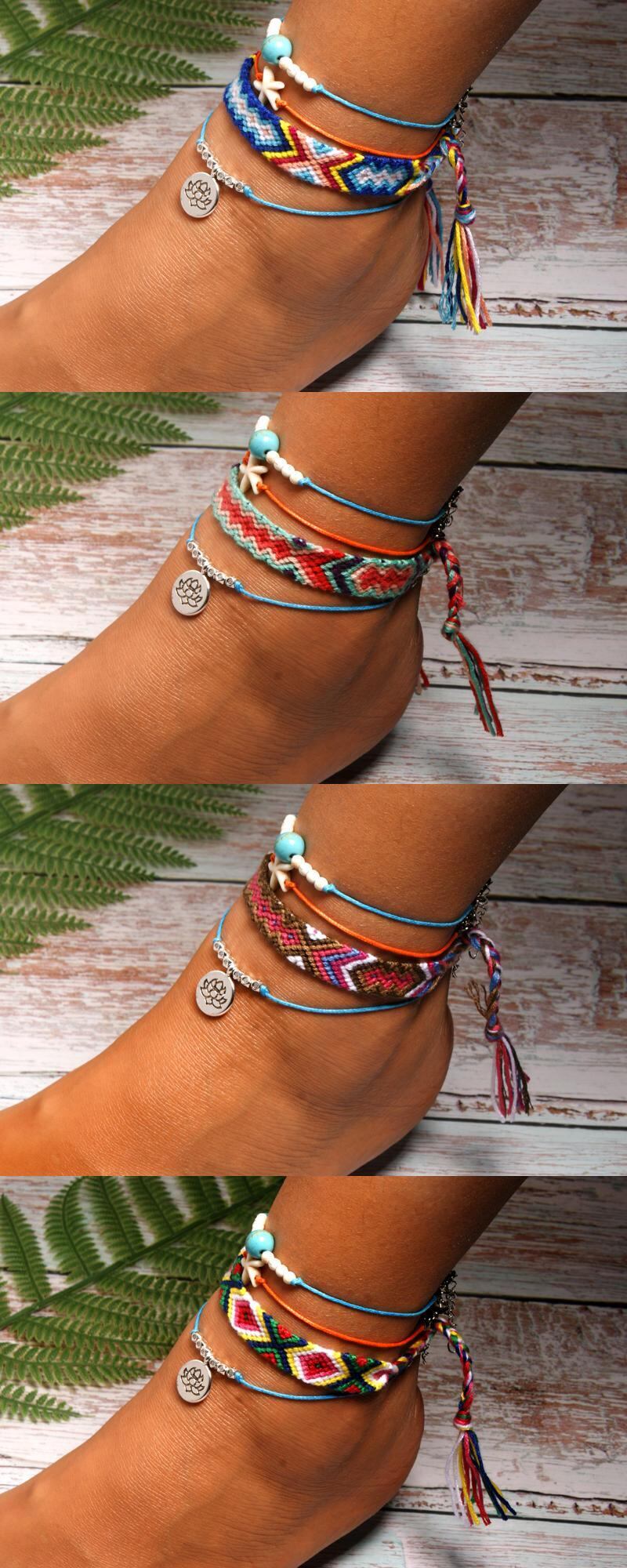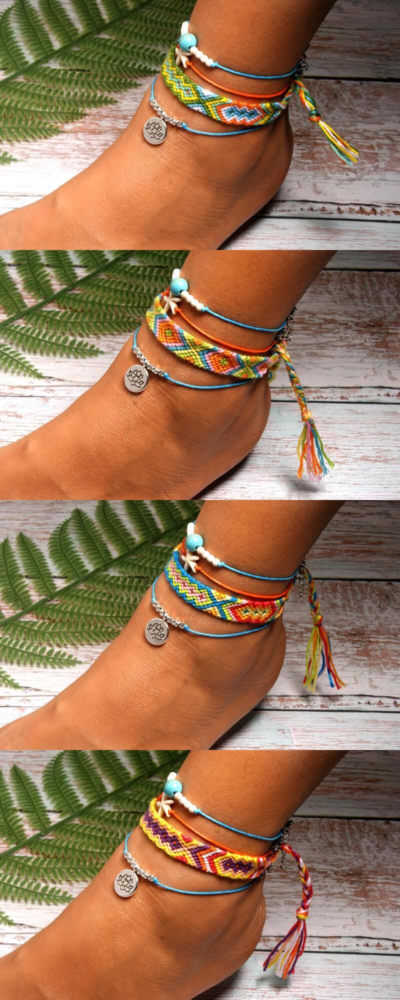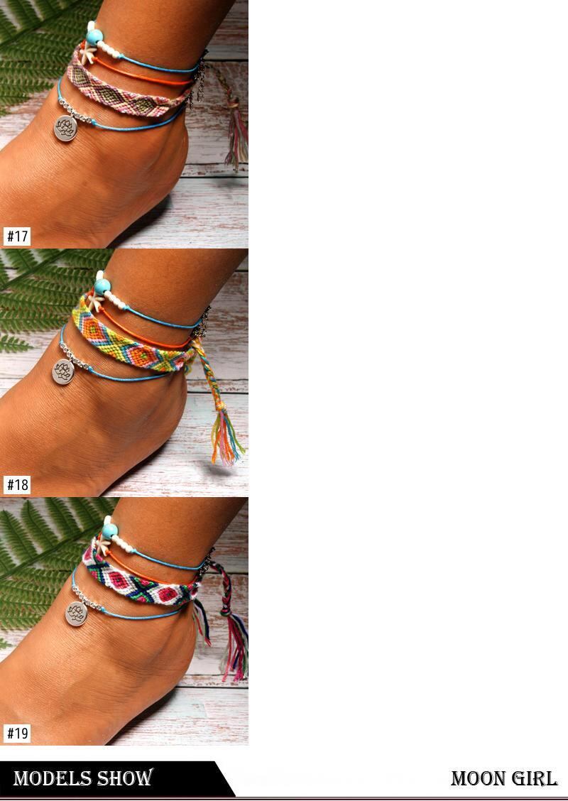 送料無料 MOONGIRL手作り織りボボロータスアンクレットセットスターフィッシュ4ピースボヘミアンシックサマーブレスレットアンクレットレディースギフト 夏物 アクセサリー AE665563365935010