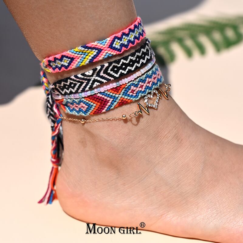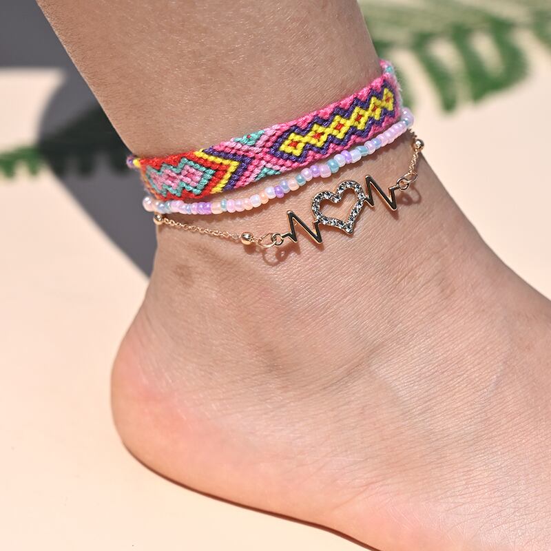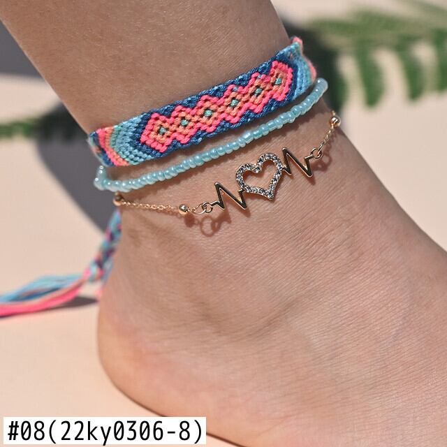 送料無料 ボヘミアンハンドメイドブレイドアンクルブレスレット女性クリスタルハートレッグチェーンアンクレットセットストラップフレンドシップビーチジュエリー アクセサリー AE665531043738321
