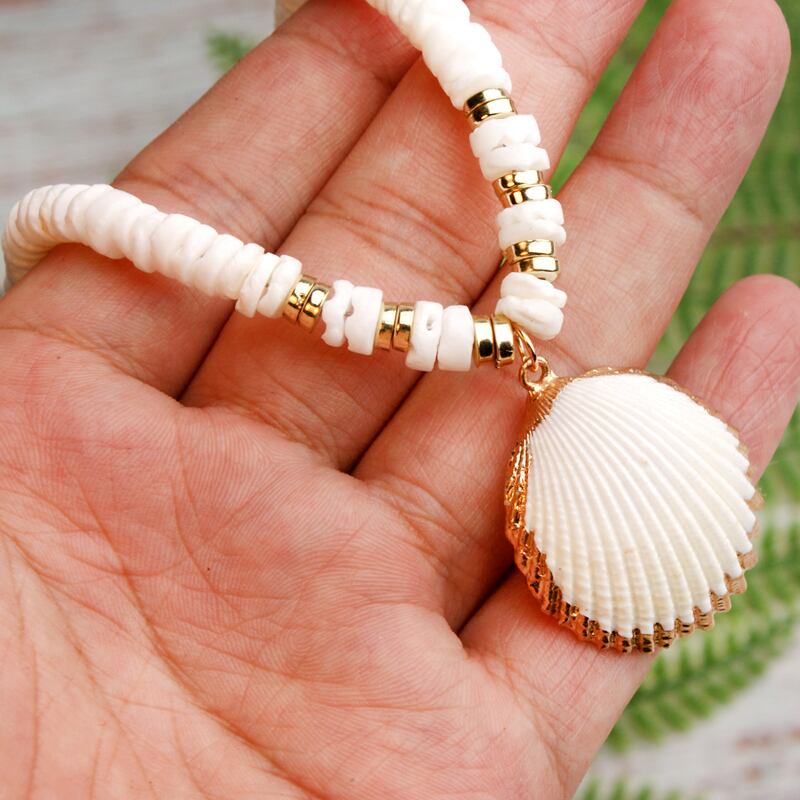 送料無料 ムーンガールナチュラルシェルカウリーペンダントネックレスレディースステートメントトレンディシックチョーカーコリアー発送 レース 天然 アクセサリー AE665586506013995