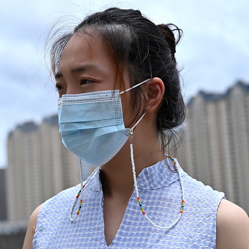 送料無料 シードビーズマスクチェーングレ女性レインボーストラップサングルネックレスシリコンアイグルグレホルダーアクセサリー レース アクセサリー AE665559392769753