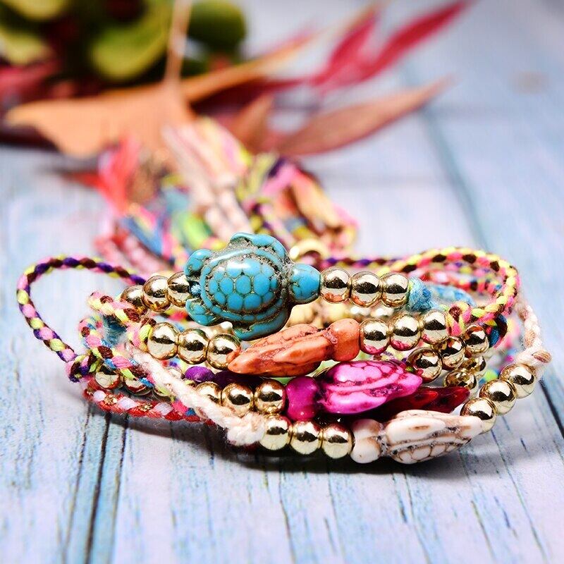 送料無料 MOONGIRL編組自由奔放に生きるラップチャームブレスレット女性織りボヘミアンタートル手作りPulseras配送 アクセサリー AE665525672391807