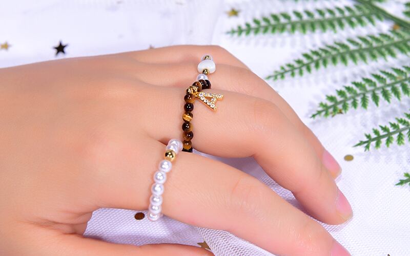 送料無料 3個/ロット天然石レディースリングカスタムイニシャル名伸縮性のあるシミュレートされた真珠調節可能な積み重ね可能な女の子のパーティーリング アジャスタブル ナチュラル 指輪 パール 人工 アクセサリー AE665566905207536