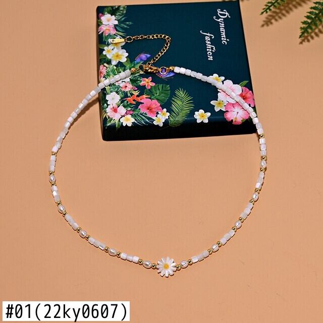 送料無料 ステンレス鋼淡水パールチョーカー金メッキビーズシェルデイジーネックレス女性ジュエリーMOONGIRL レース 真珠 アクセサリー AE665545819948307