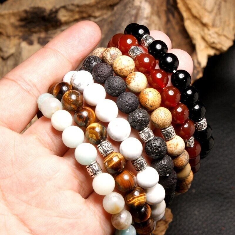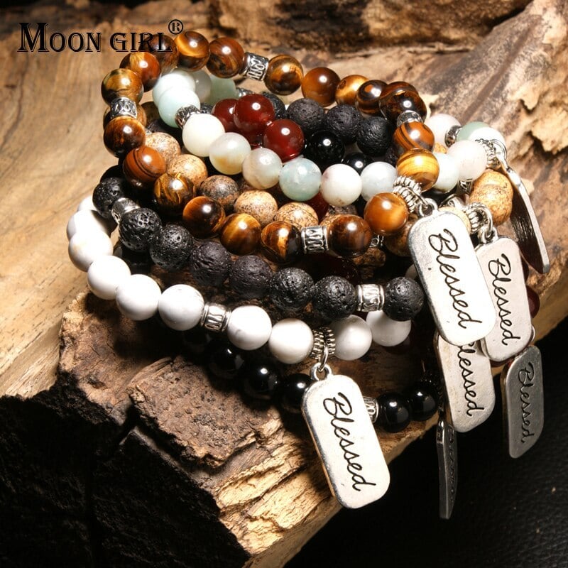 送料無料 MOONGIRL8MMナチュラルストーンブレスストレッチブレスレット女性ディフューザー溶岩ストーンチャームブレスレットヨガジュエリー 天然 アクセサリー AE665540582205297