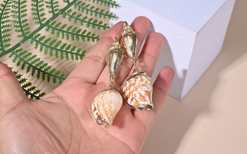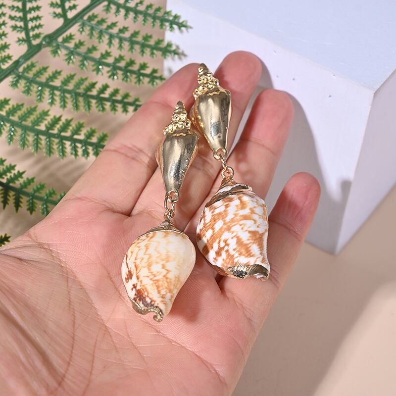 送料無料 シェルコンクペンダントスタッドピアス女性非対称メタルアクセサリーサマーパーティーアクセサリーイヤークリップ イヤリング 夏物 リング 指輪 アクセサリー AE665558119502930