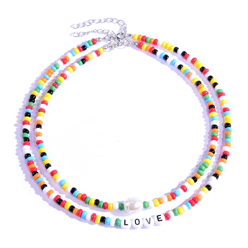送料無料 シードビーズラブネックレスセット女性チョーカーマルチレイヤー名前パール自由奔放に生きるヴィンテージストリートウェアコリアー レース 真珠 ビンテージ アクセサリー AE665526261594333