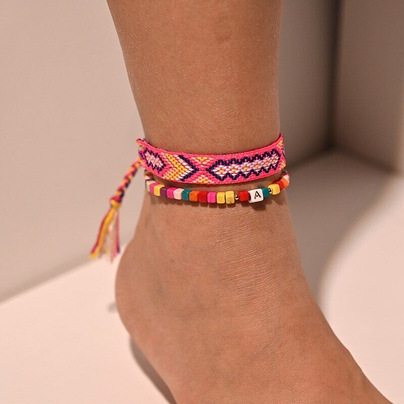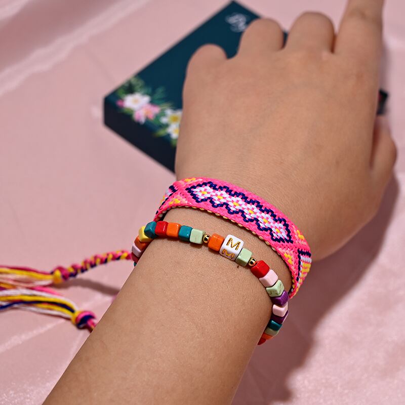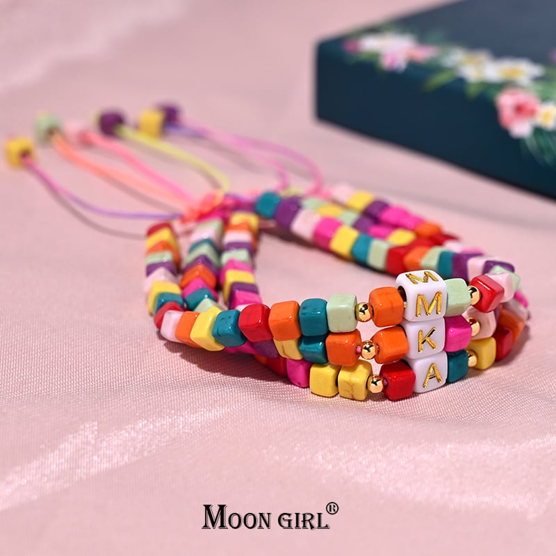 送料無料 イニシャルブレスレット女性カラフルビーズチャームA-Zレターパルセラブレスレットジュエリーアクセサリー アクセサリー AE665512300824912