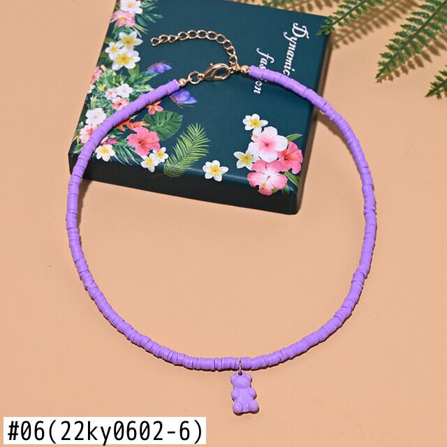送料無料 ステンレス鋼チェーンベアペンダントネックレストレンディなコロフルクレイかわいいチョーカー女性の女の子のジュエリーMOONGIRL レース 大人ガーリー スウィート キュート カジュアル アクセサリー AE665564660779004