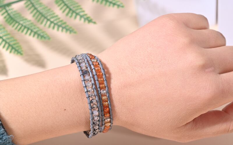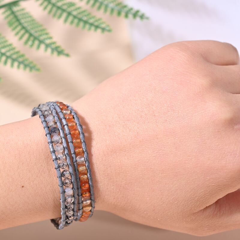 送料無料 1個2ループレザークリスタルラップブレスレットボヘミアンヨガビーズ織りレイキストーンブレスレット女性男性ギフトアクセサリー アクセサリー AE66555419022847