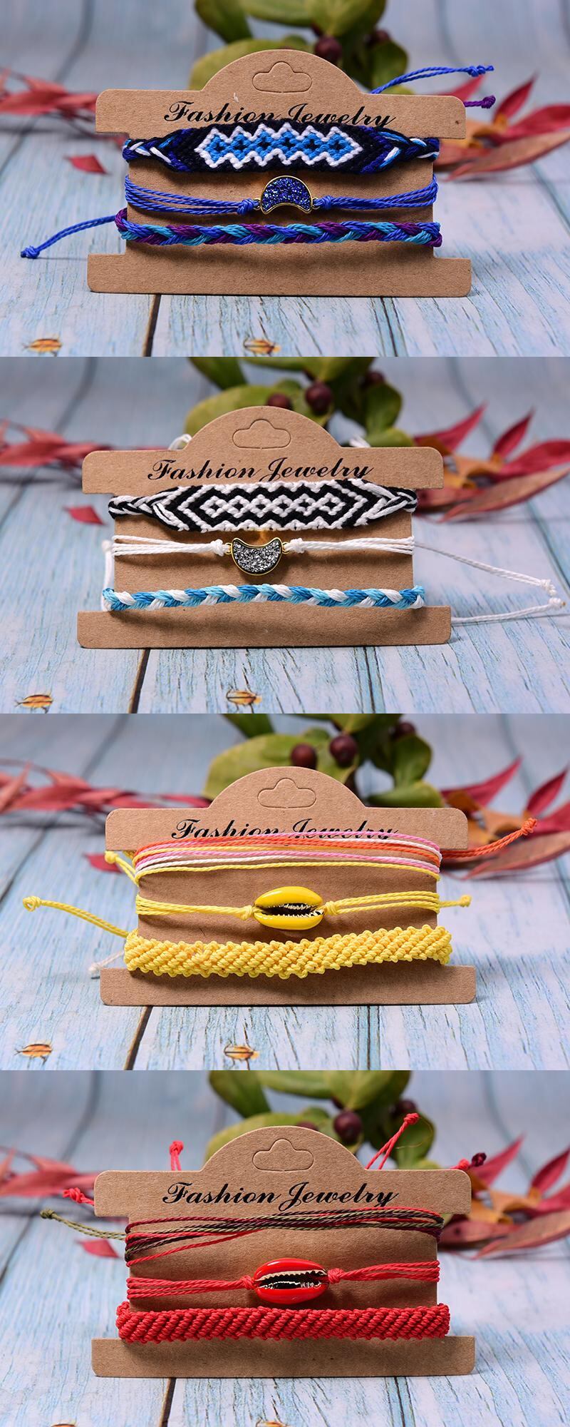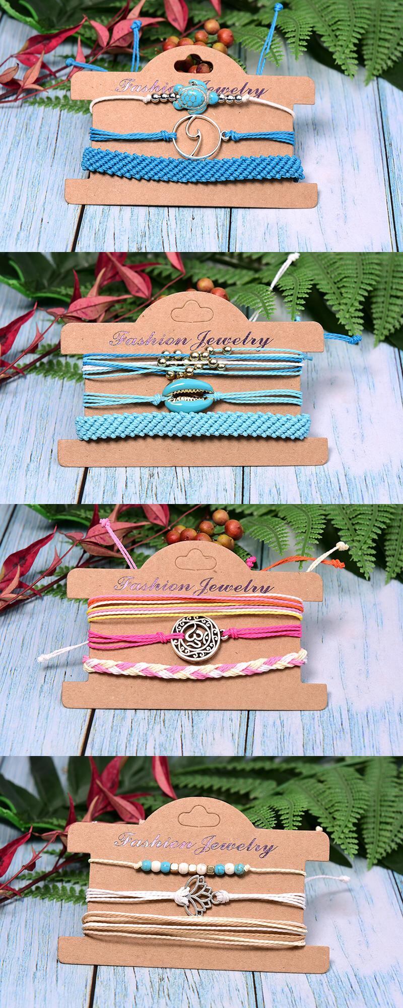 送料無料 MOONGIRLワックスロープ防水チャームブレスレット女性クロスウェーブシェルタートルロータスマップシックな友情Pulseras配送 アクセサリー AE665563404956451