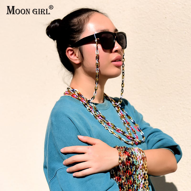 送料無料 ユニークなアクリルネックチェーンの女性のネックレスGlesストラップトレンディな長いカラフルなステートメント自由奔放に生きるCollaresジュエリー ロング レース アクセサリー AE665561680915491