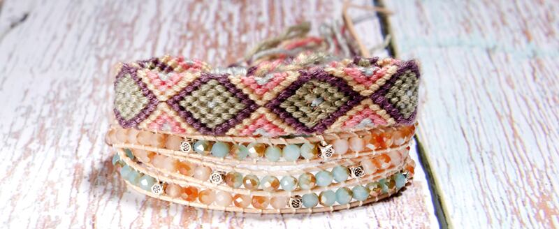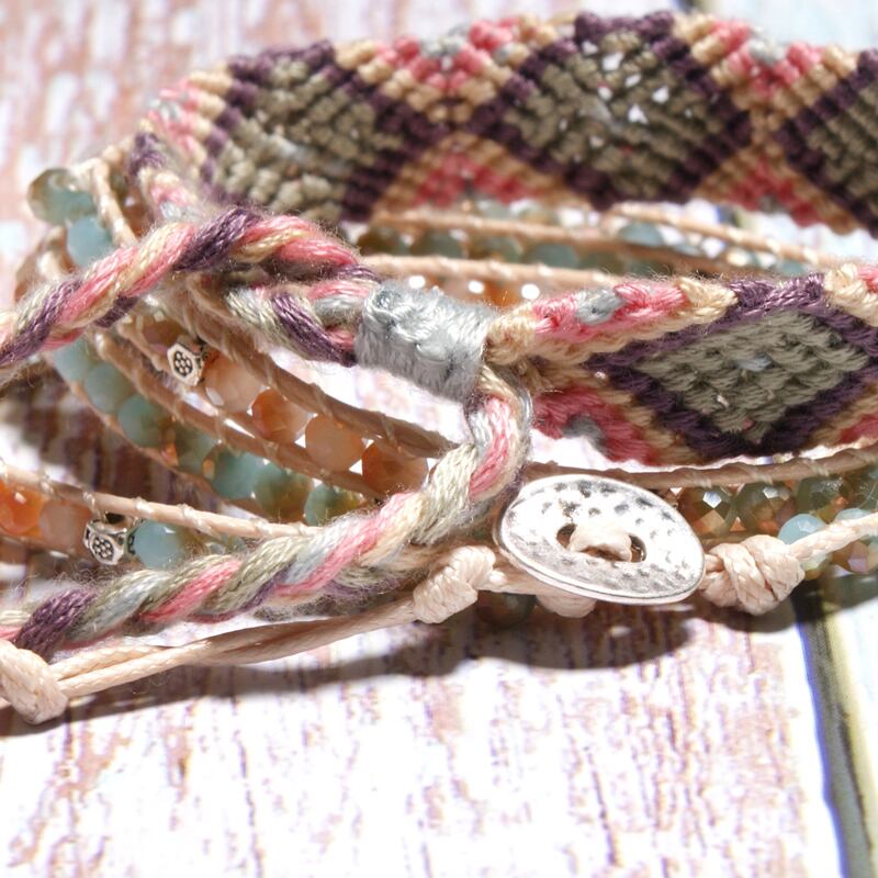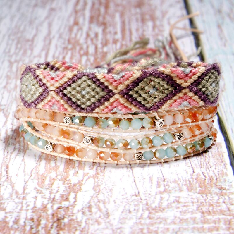 送料無料 MOONGIRLスリータイムズレザークリスタルラップブレスレットボヘミアンヨガビーズ2個手作り織りブレスレット女性 アクセサリー AE665522376050479