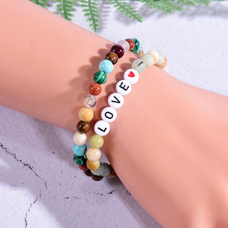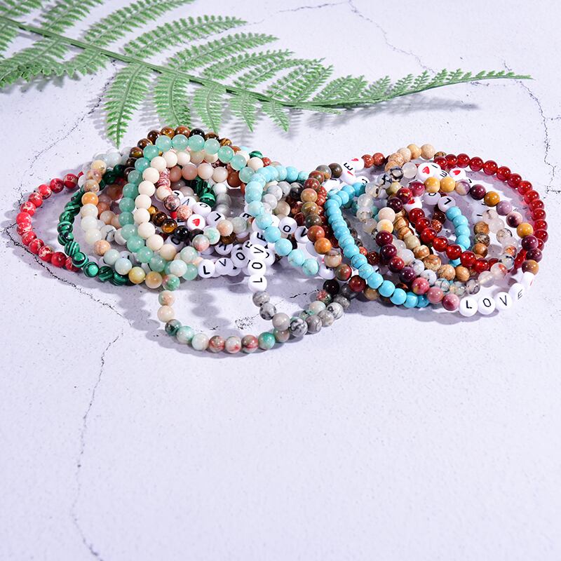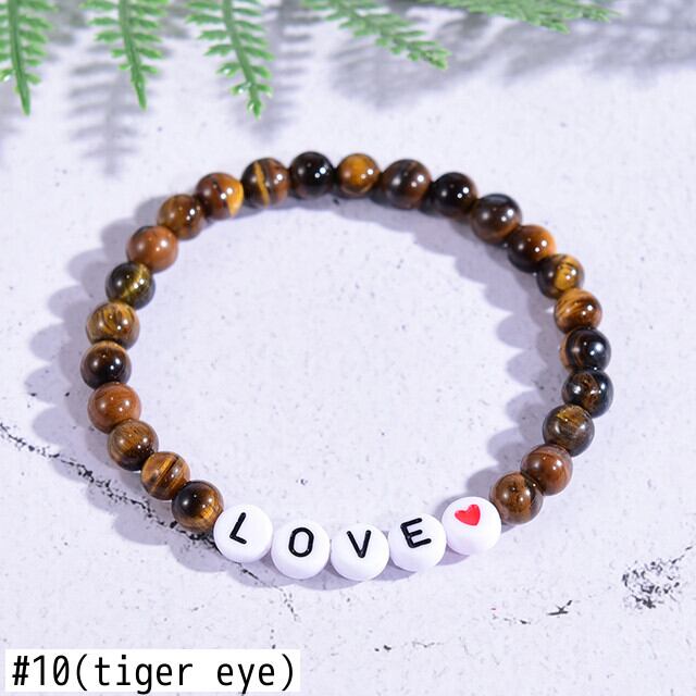 送料無料 カスタムレターラブチャームブレスレット女性男性6MM天然石伸縮性のある女の子フレンドシップブレスレットジュエリー恋人ギフト ナチュラル アクセサリー AE665522581627521