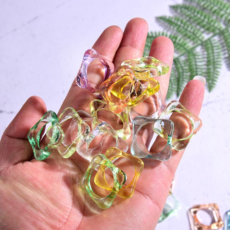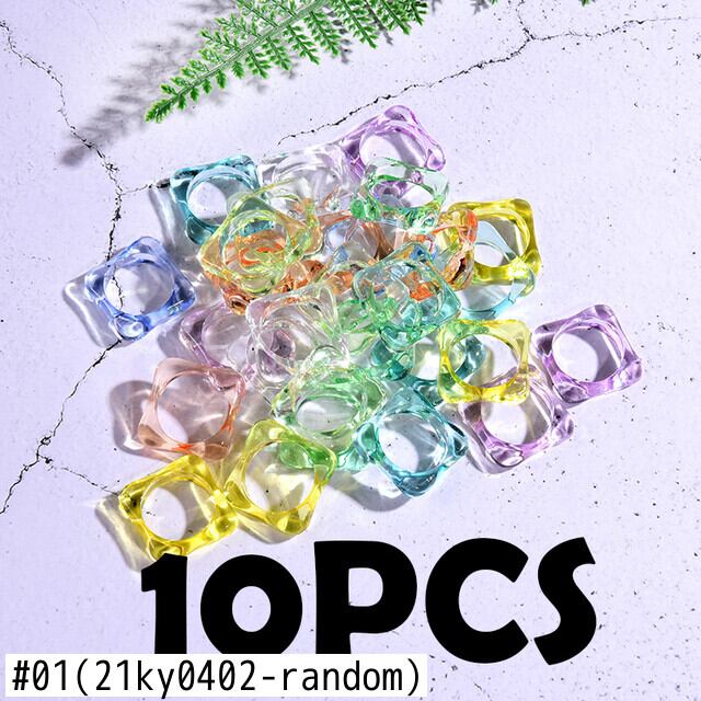 送料無料 10個ランダムスクエアリング女性アクリル樹脂トレンディな友情透明リングセットジュエリーガールズサマーパーティーギフト 夏物 指輪 スクウェア アクセサリー AE665530518962784