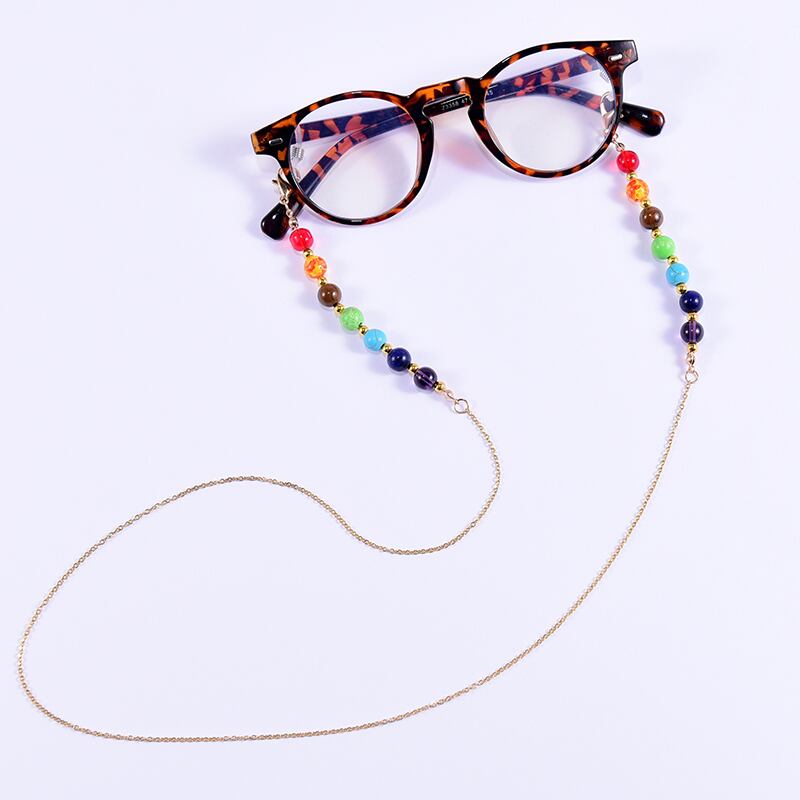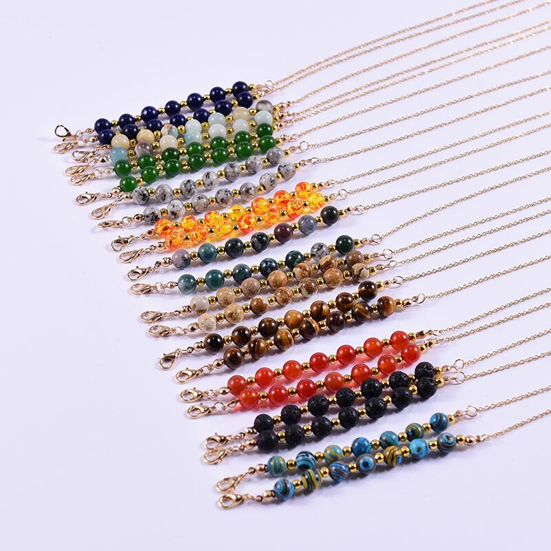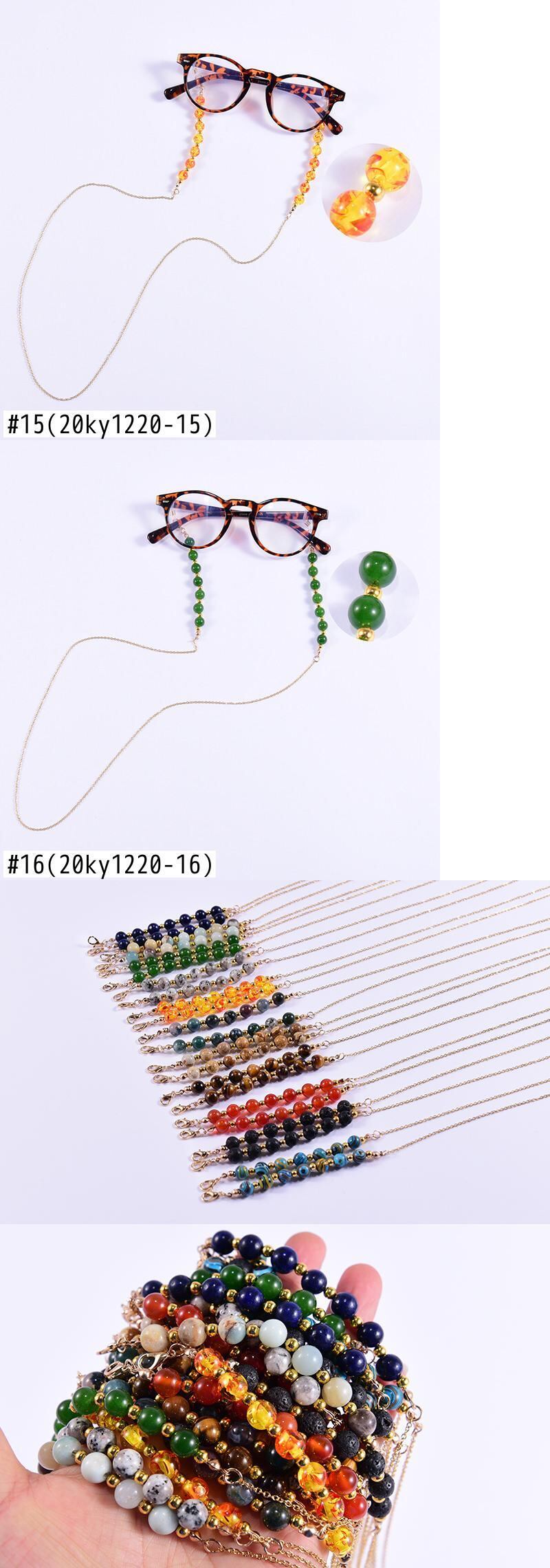 送料無料 ユニークなチャクラグレスチェーン女性8MMナチュラルストーンアイウェア読書サングルネックチェーンストラップホルダー 天然 アクセサリー AE665567454359365