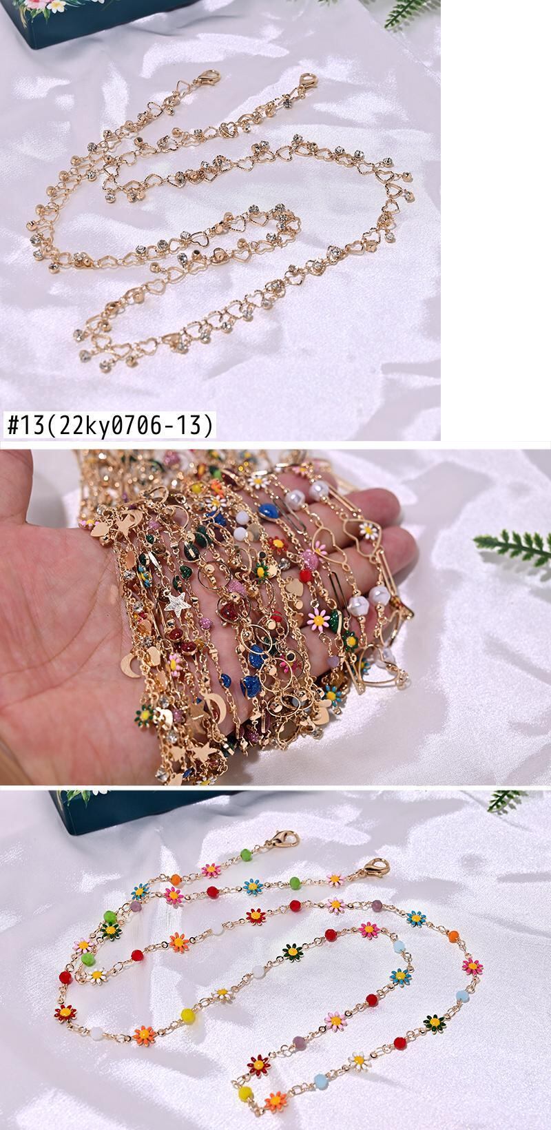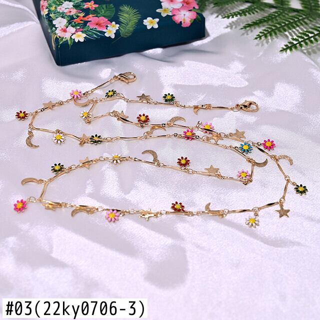 送料無料 手作り銅アイグルチェーンストラップカラフルデイジー読書サングルチェーン女性Glesアクセサリームーンガール アクセサリー AE665595553586395