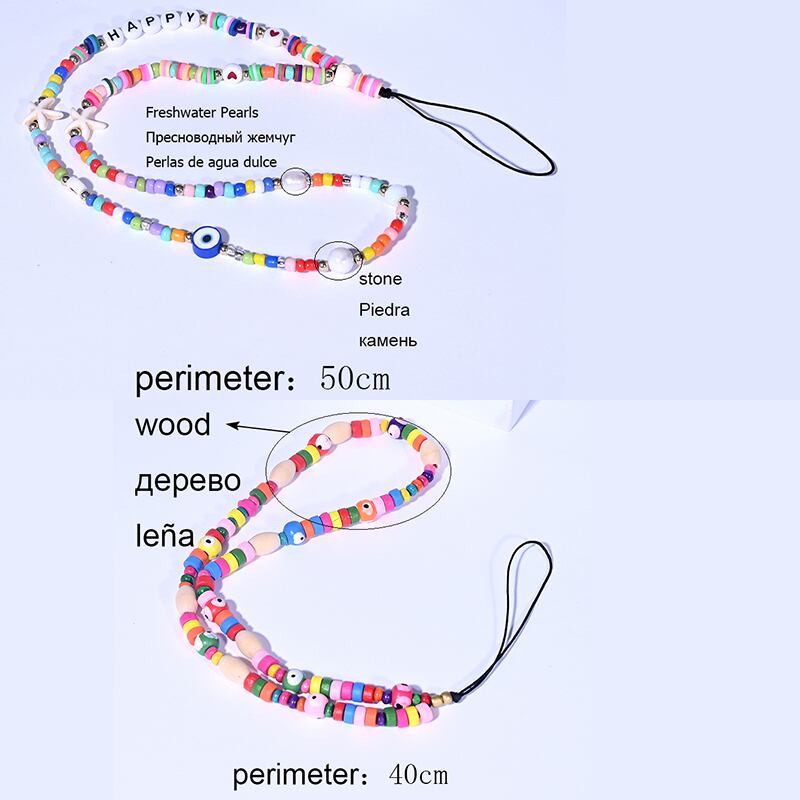 送料無料 ボヘミアンソフトポッタービーズ携帯電話チェーン女性ストラップビーズユニバーサルパーティーレターハートモバイルアクセサリー アクセサリー AE665541091392046